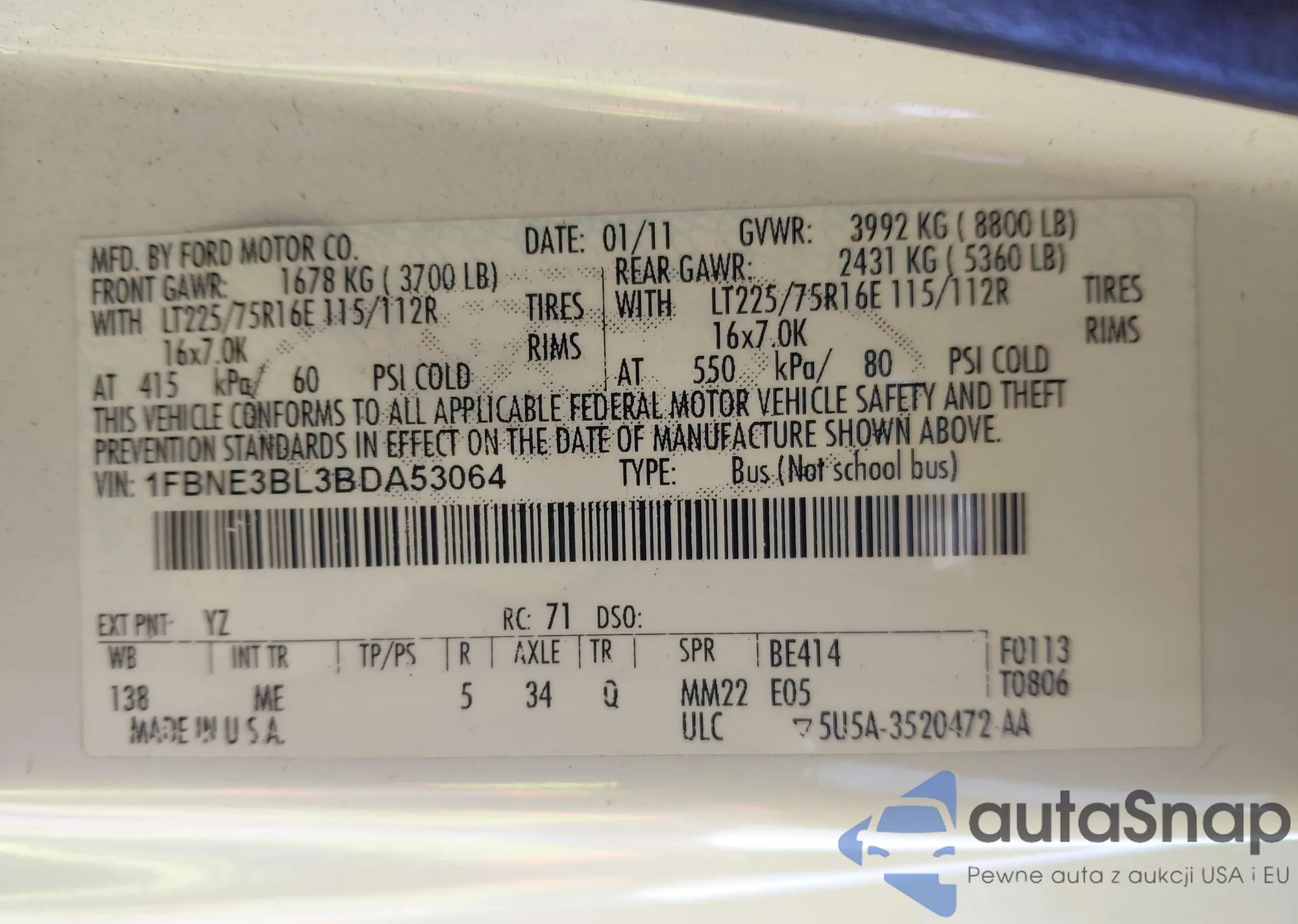 • VIN: 1FBNE3BL3BDA53064