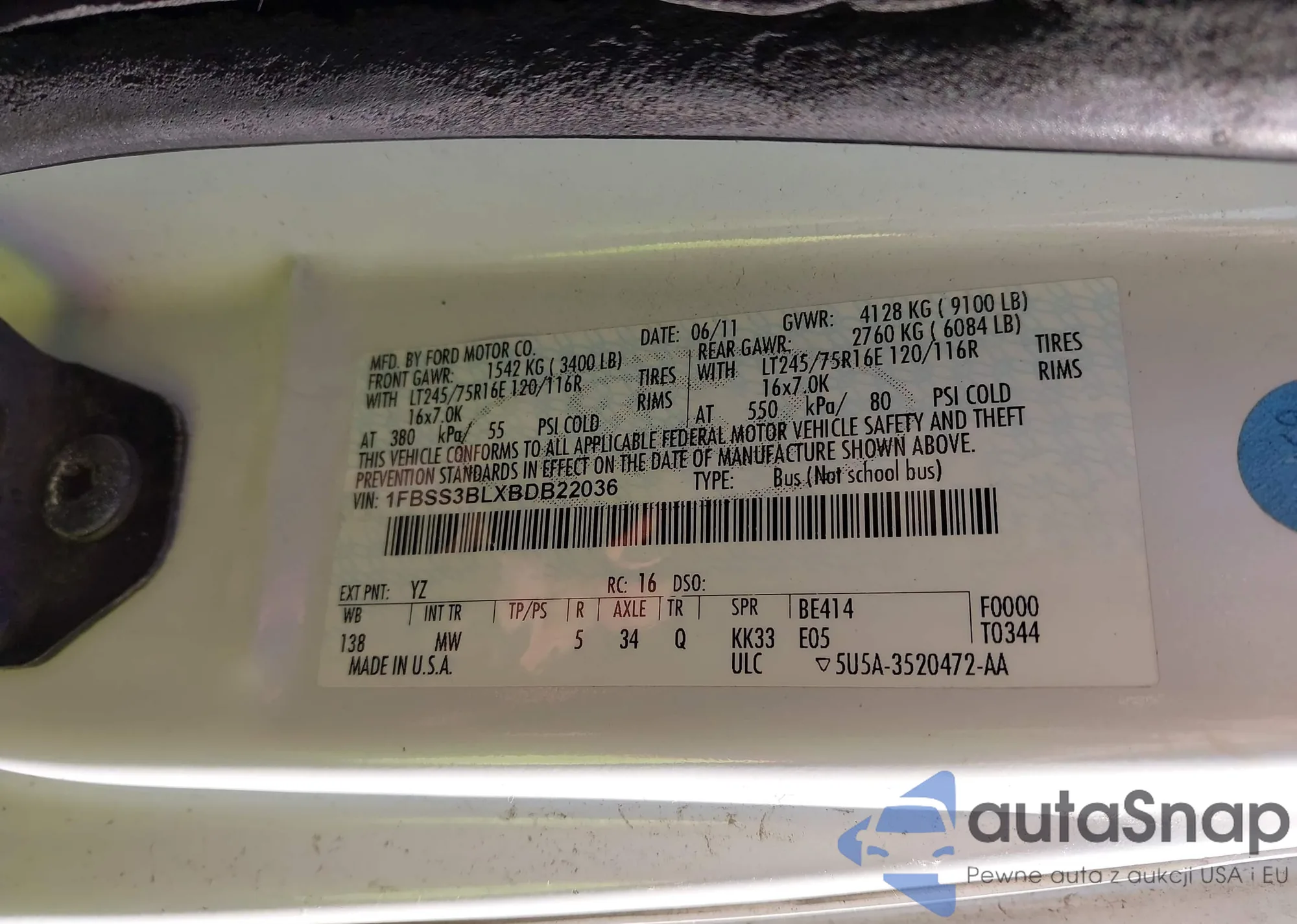 VIN: 1FBSS3BLXBDB22036
