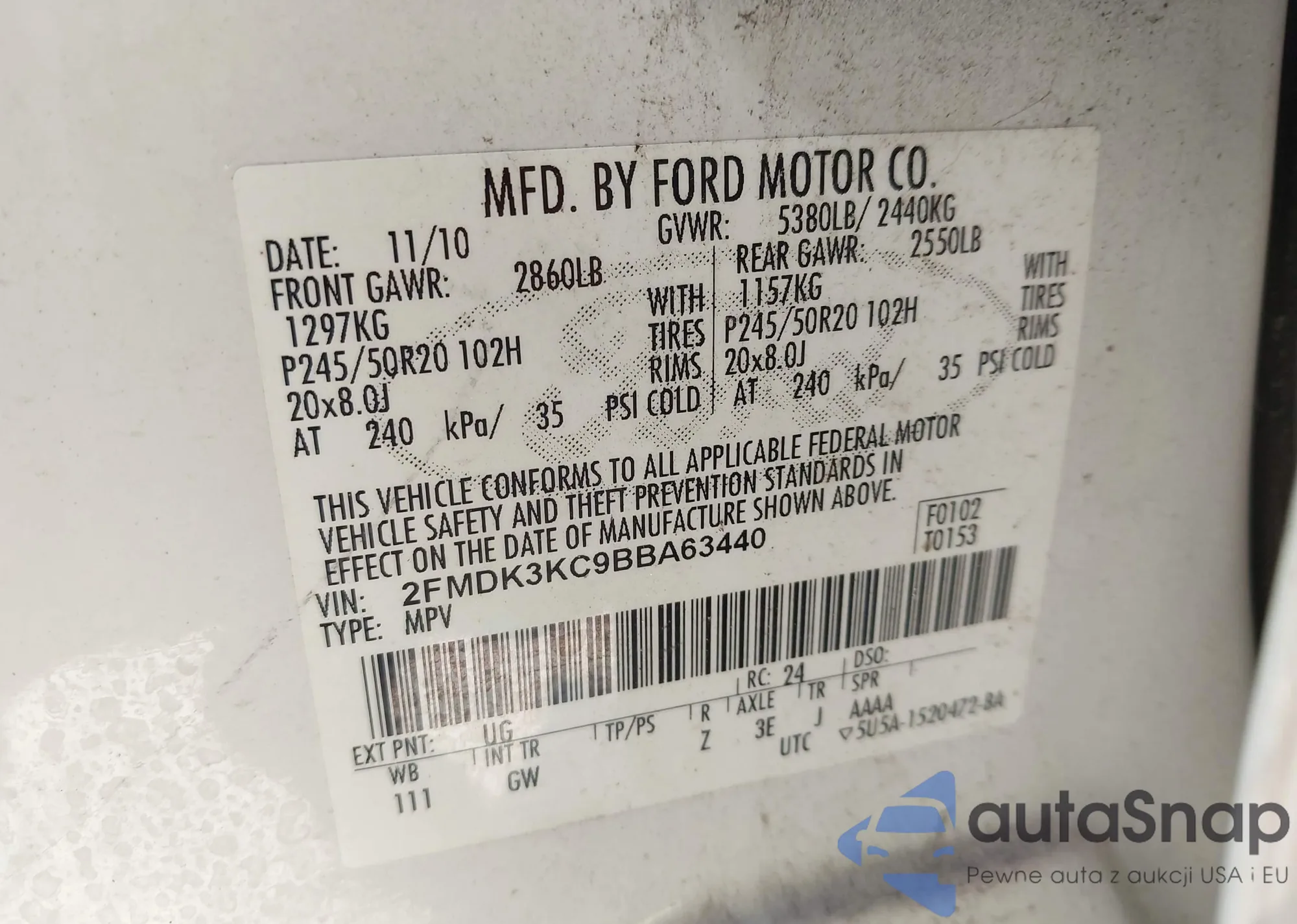 VIN: 2FMDK3KC9BBA63440