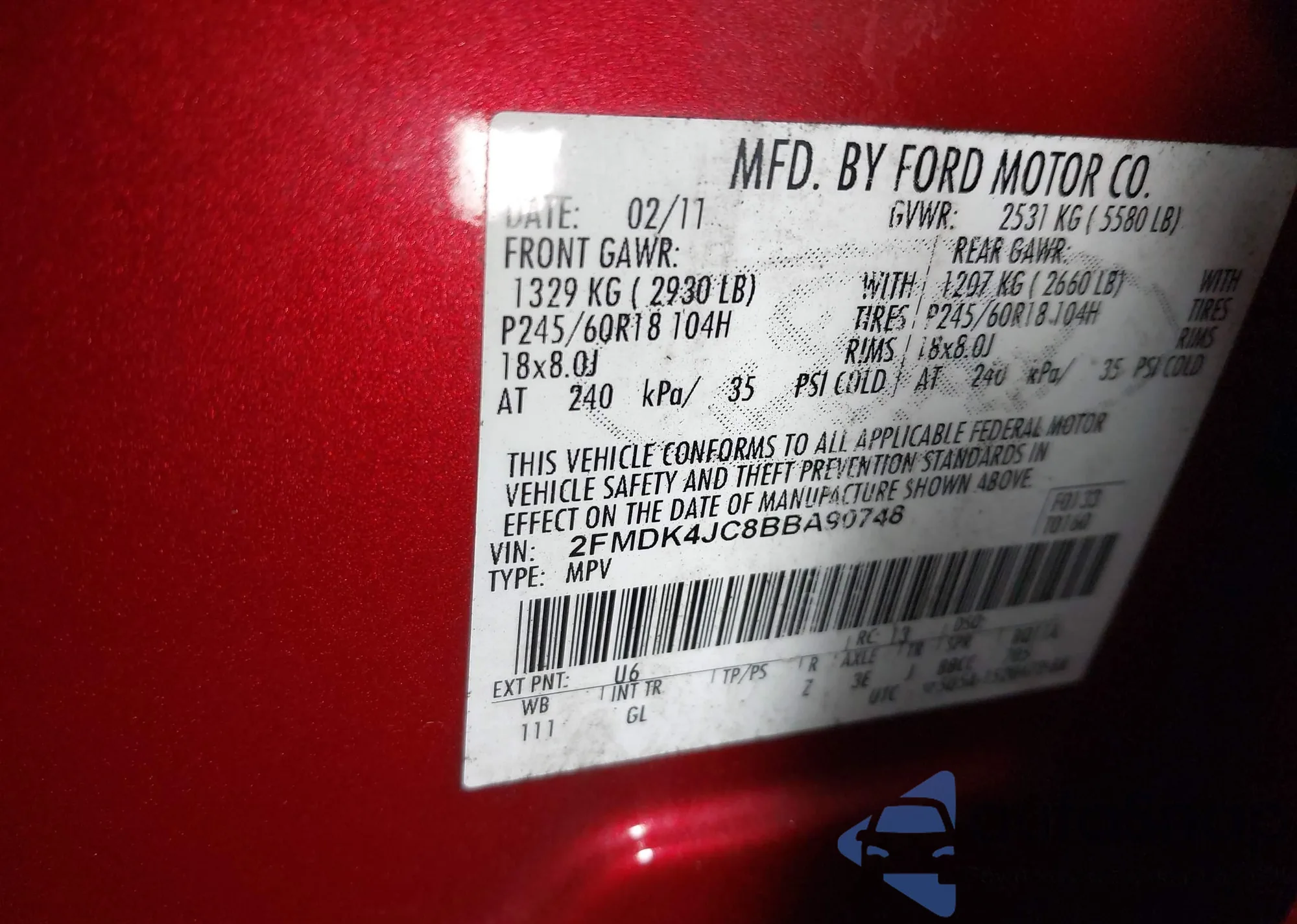 VIN: 2FMDK4JC8BBA90748