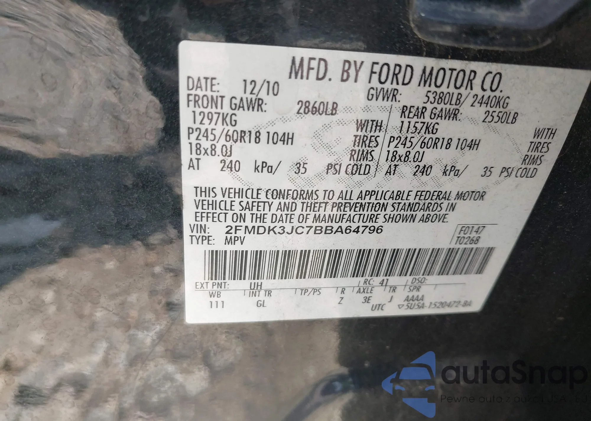 VIN: 2FMDK3JC7BBA64796