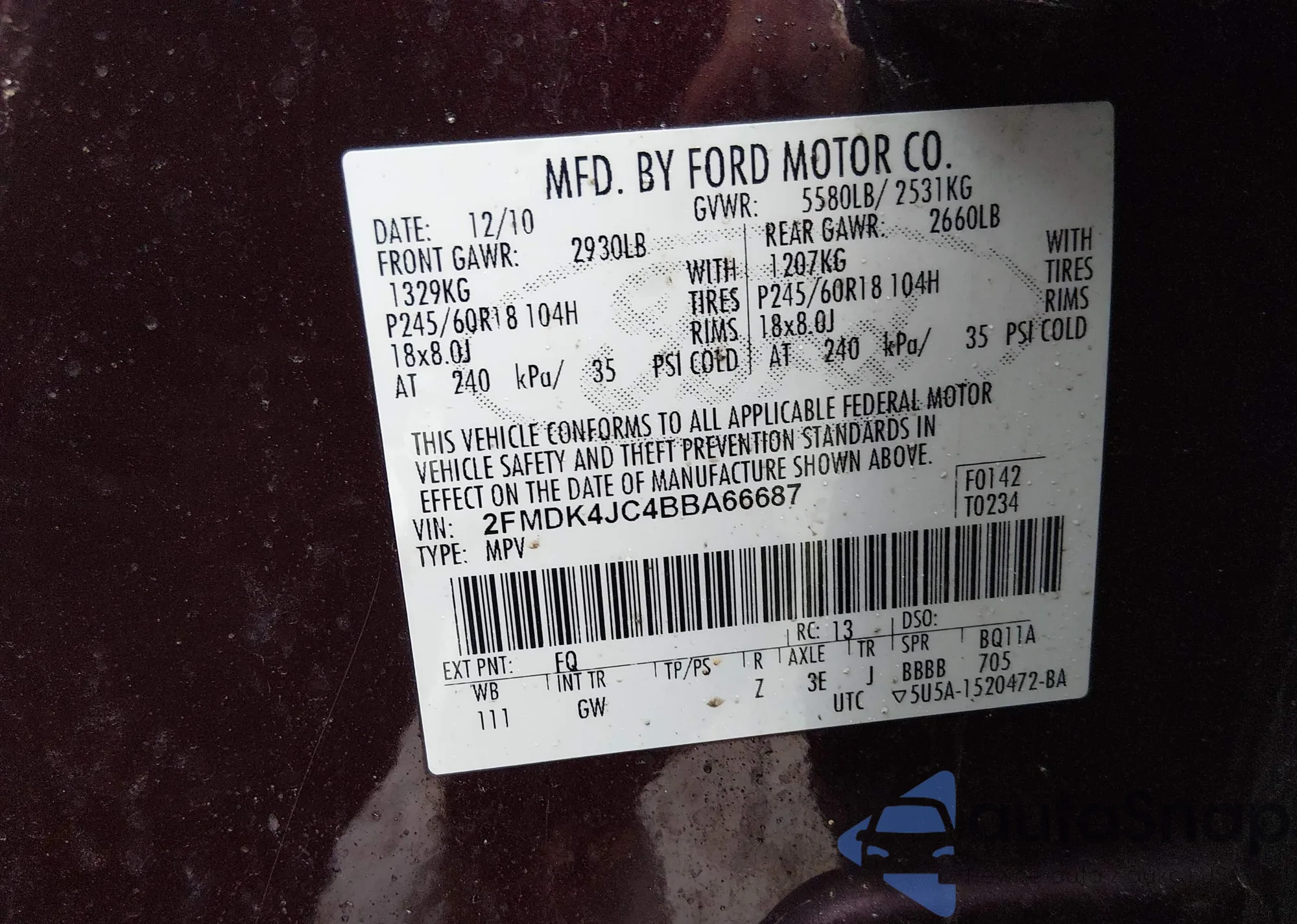 • VIN: 2FMDK4JC4BBA66687