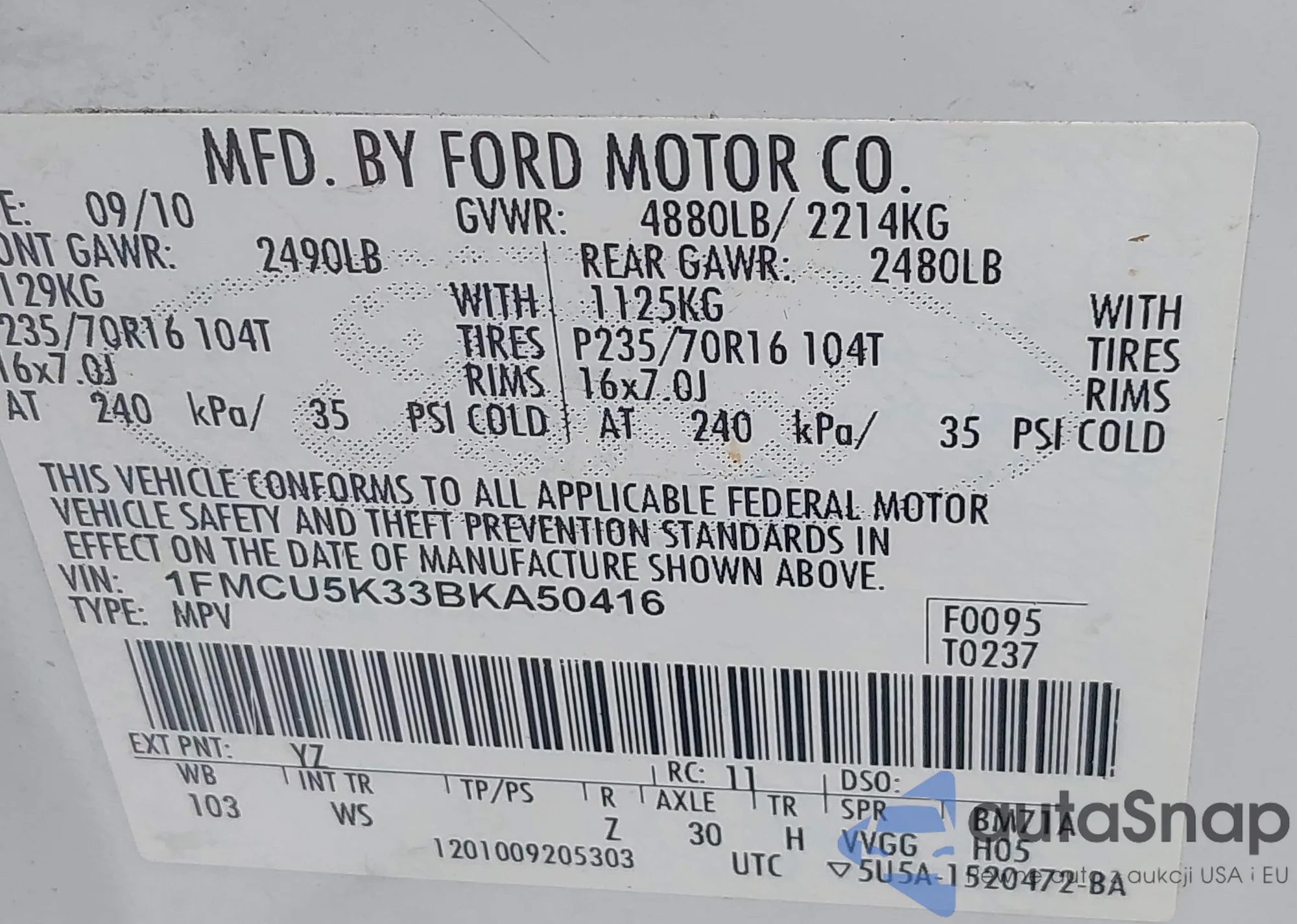 VIN: 1FMCU5K33BKA50416