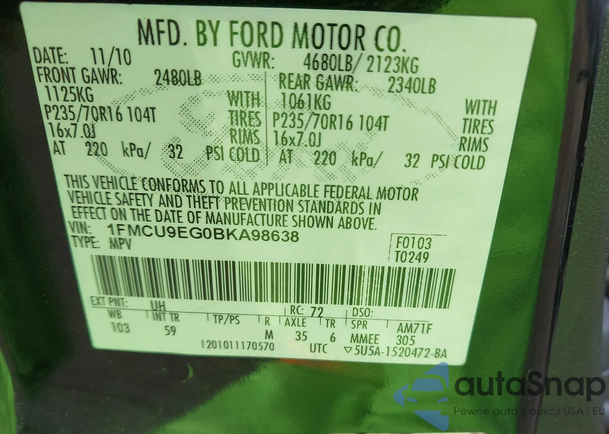 VIN: 1FMCU9EG0BKA98638