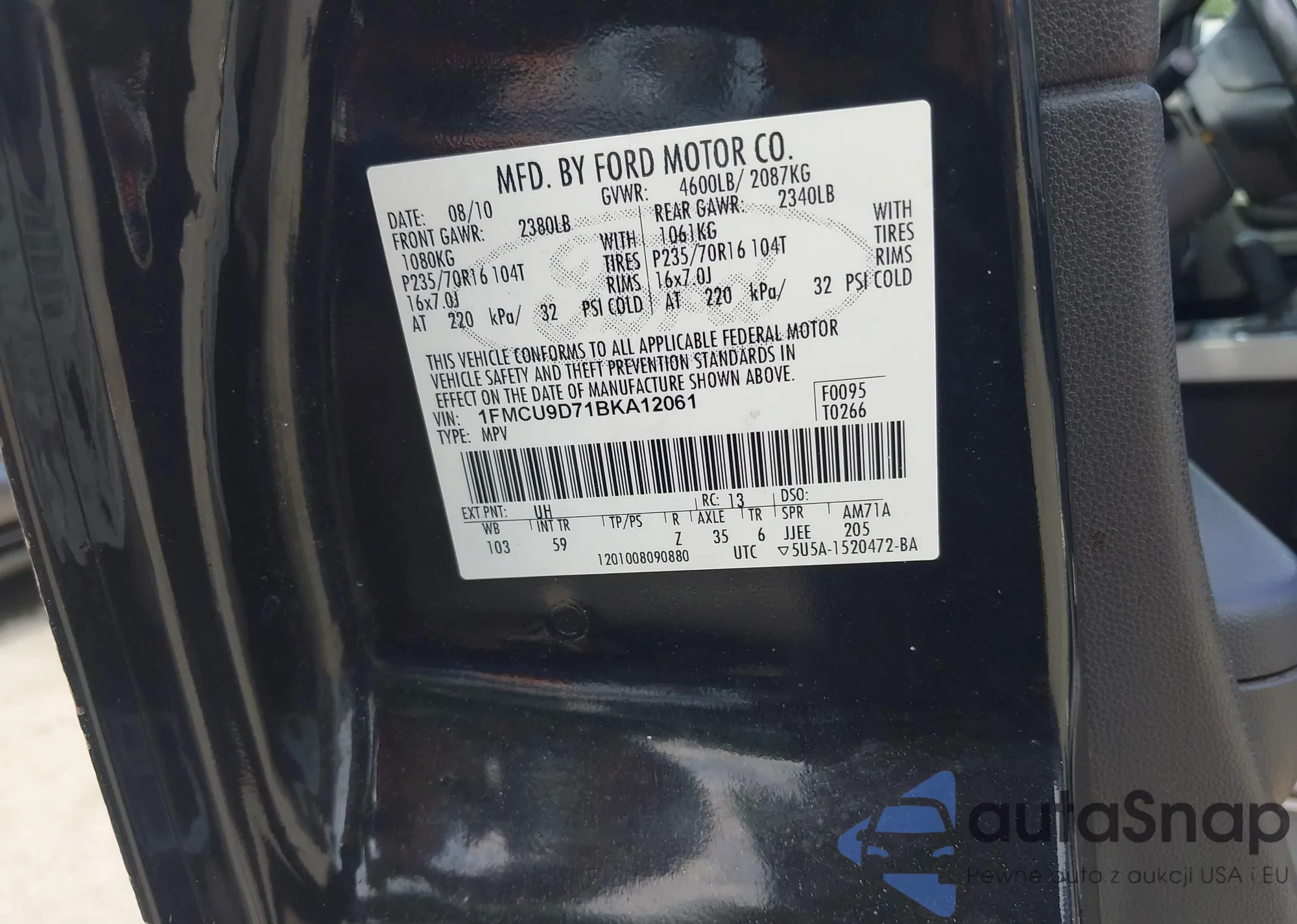 VIN: 1FMCU9D71BKA12061