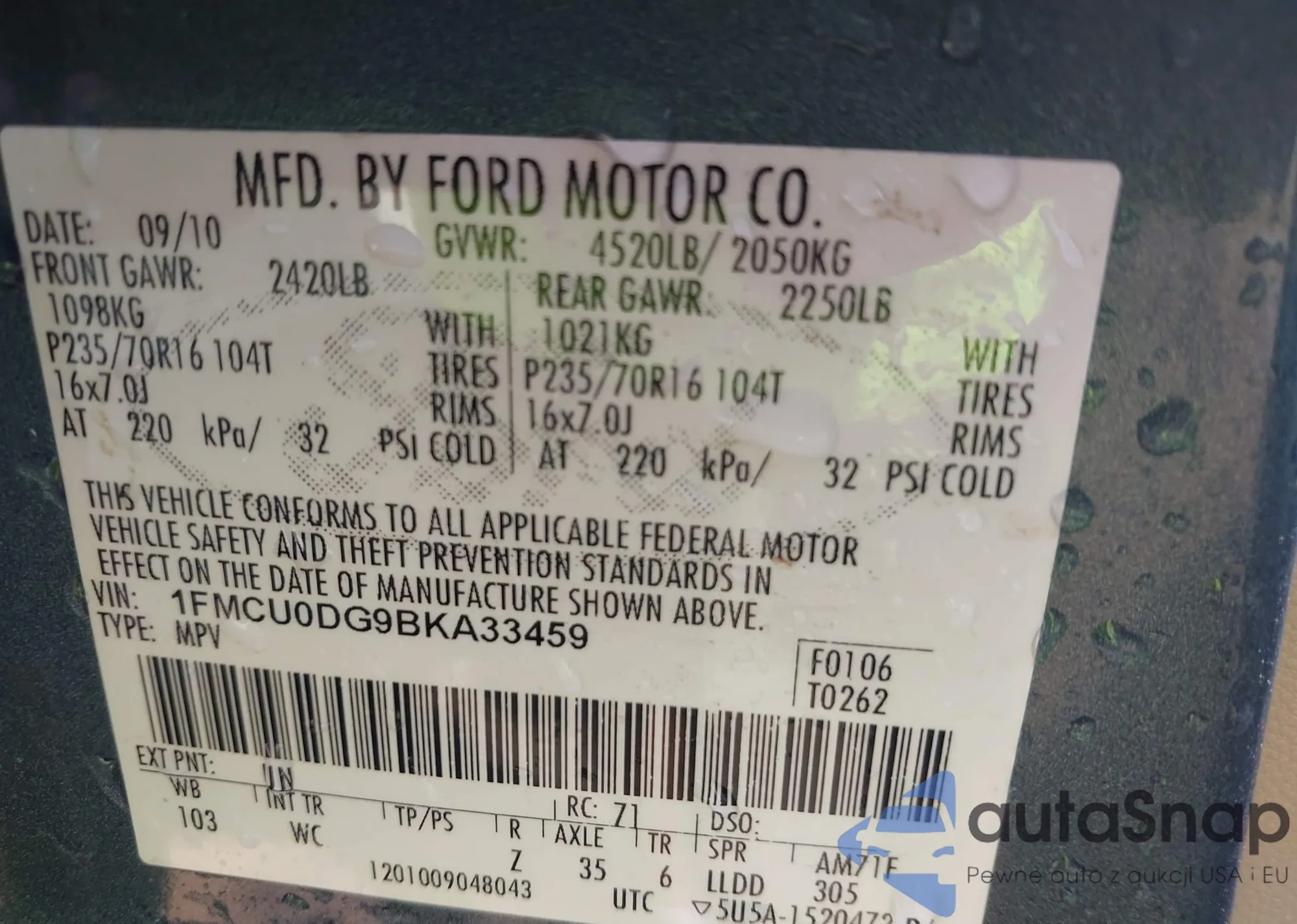 VIN: 1FMCU0DG9BKA33459