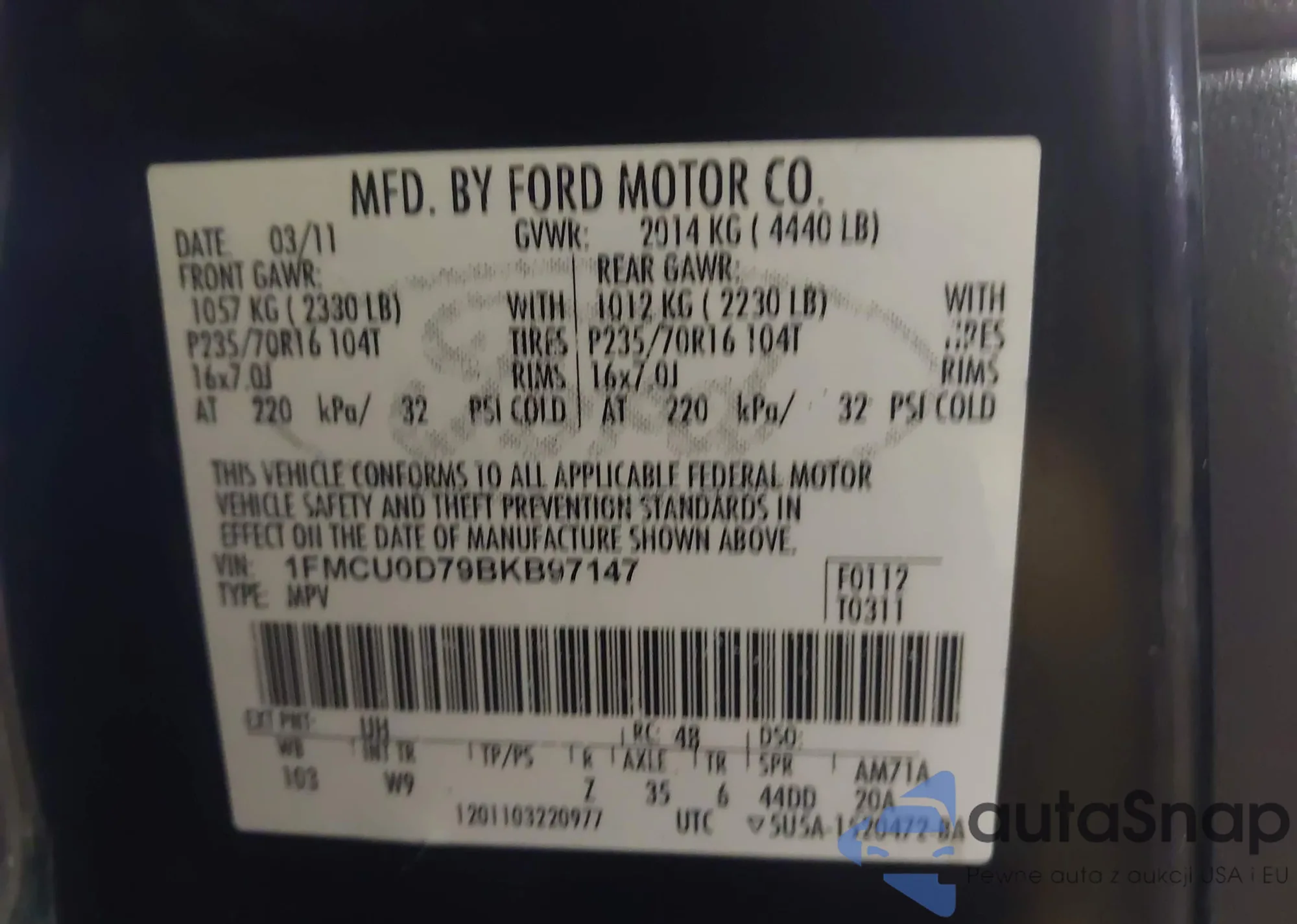 VIN: 1FMCU0D79BKB97147