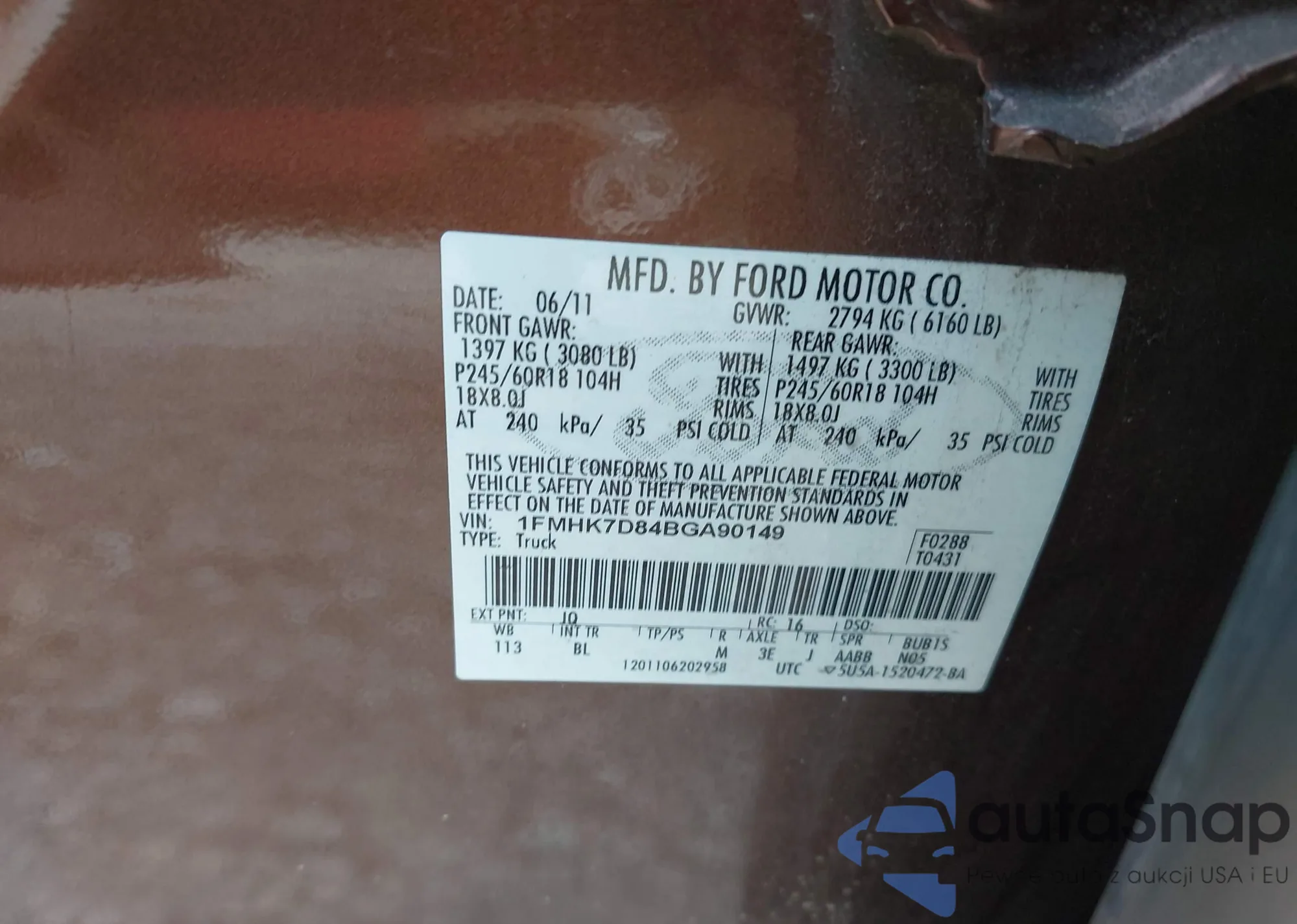 VIN: 1FMHK7D84BGA90149