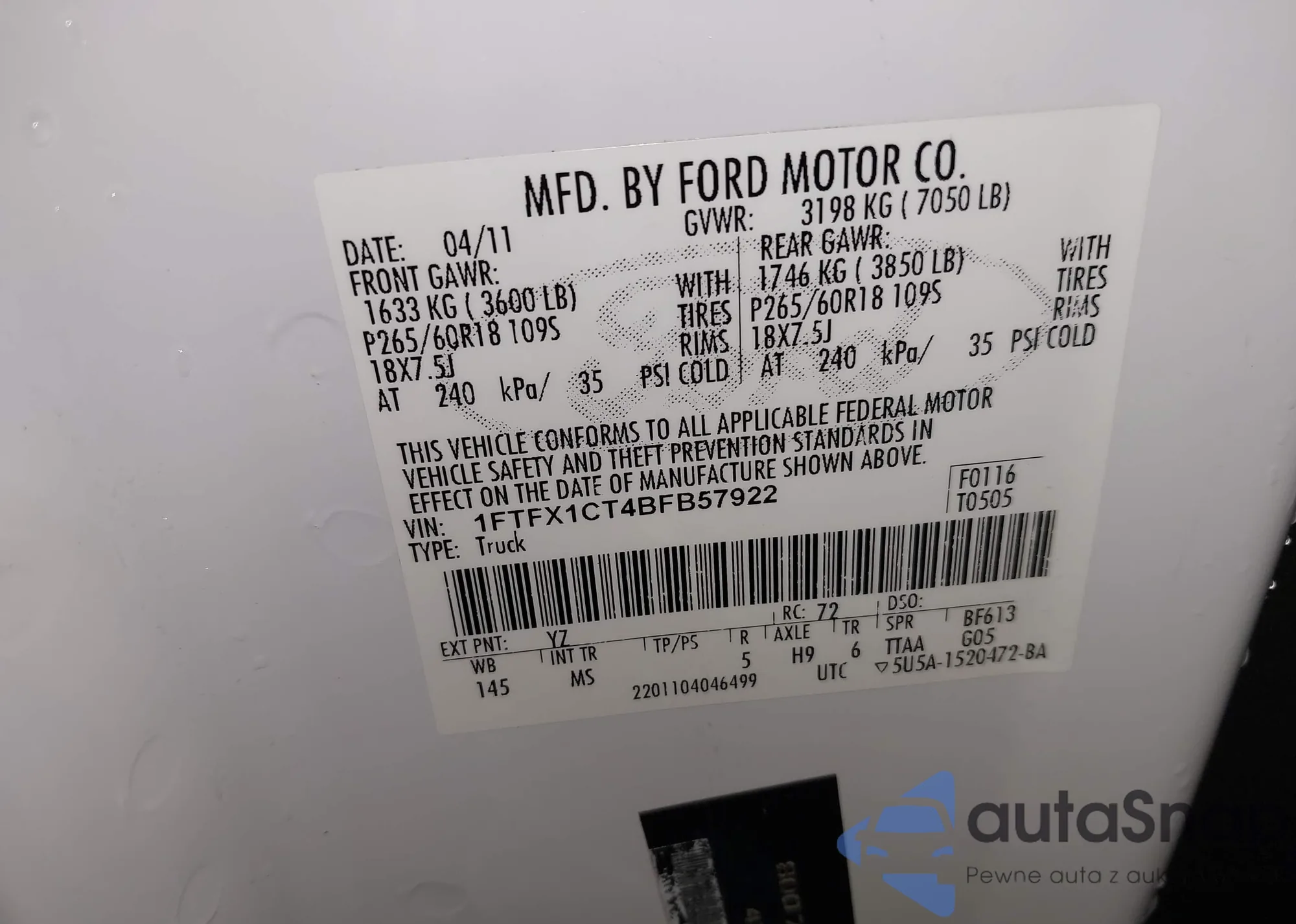 VIN: 1FTFX1CT4BFD57922