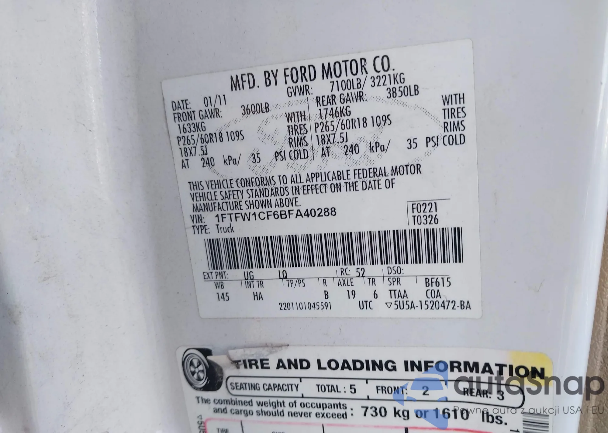 VIN: 1FTFW1CF6BFA40288