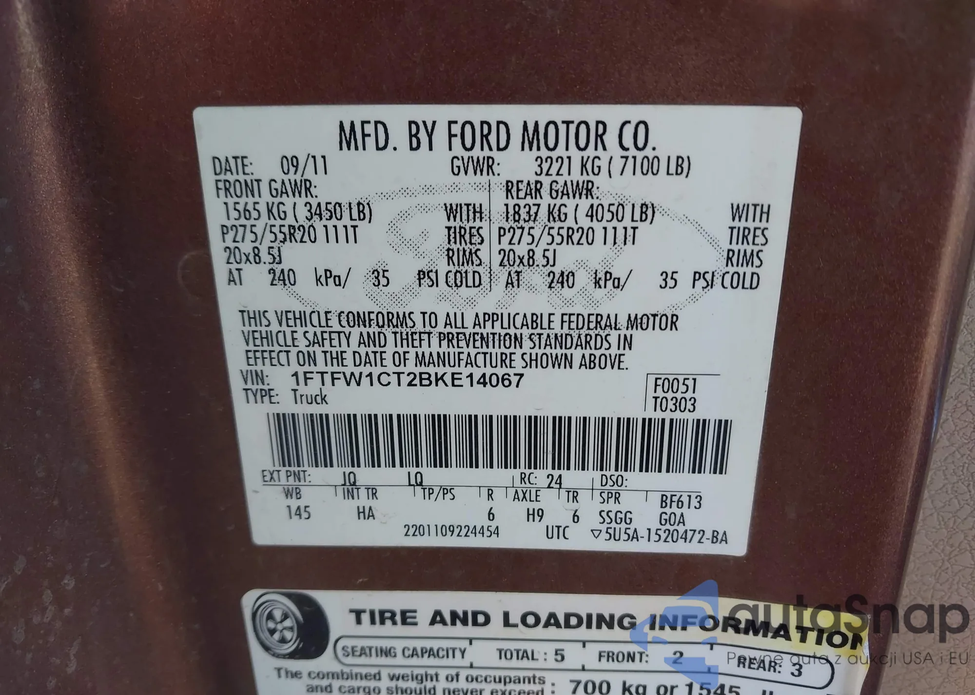 VIN: 1FTFW1CT2BKE14067