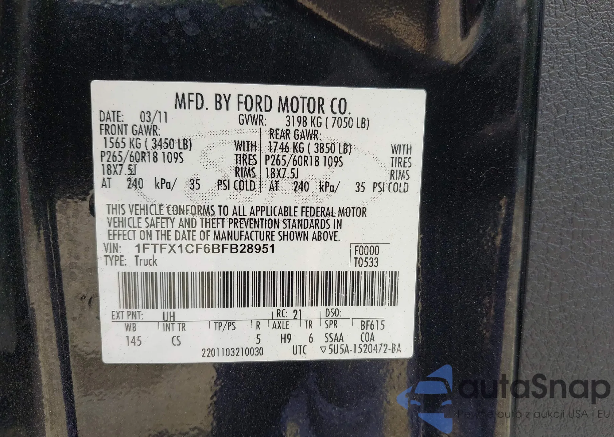 • VIN: 1FTFX1CF6BFB28951