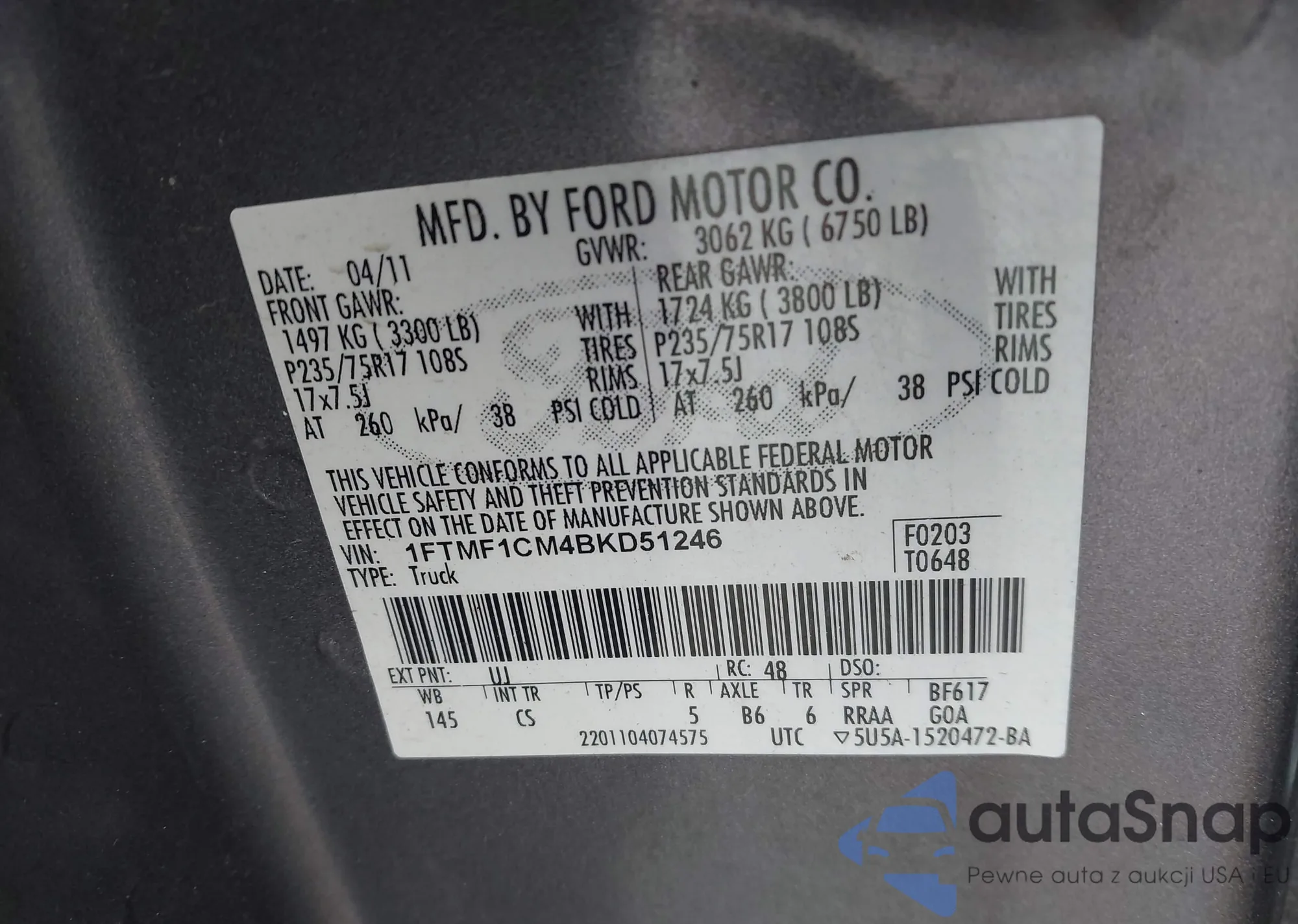VIN: 1FTMF1CM4BKD51246
