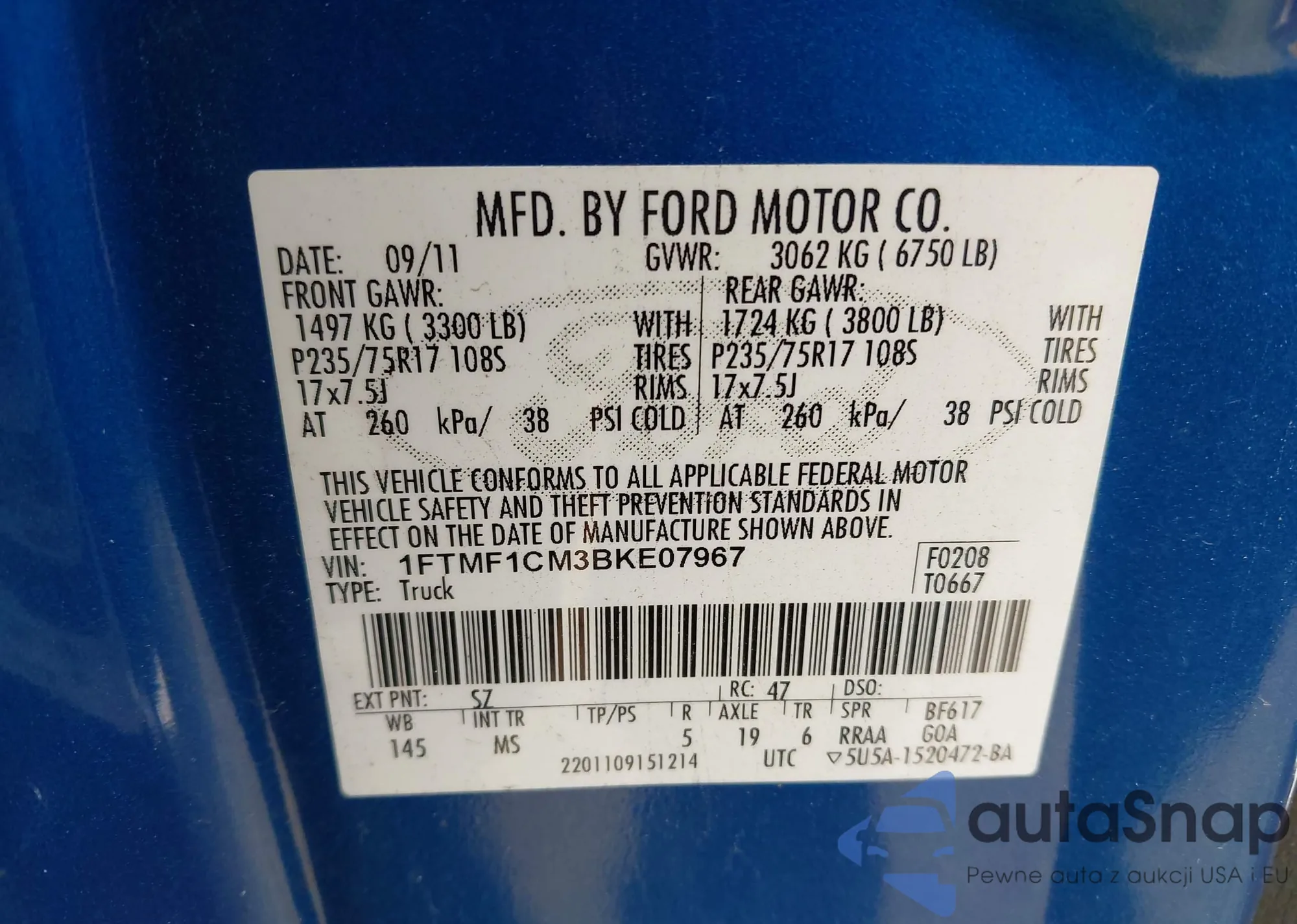 VIN: 1FTMF1CM3BKE07967