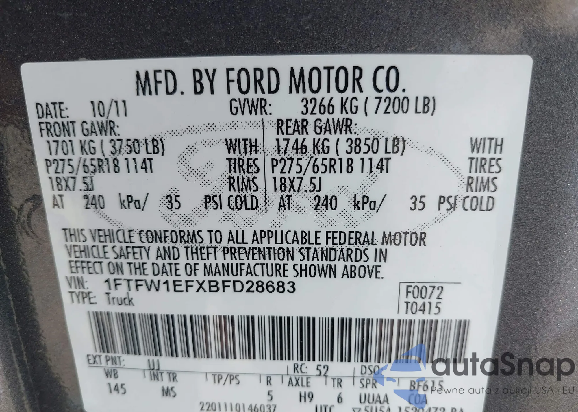 VIN: 1FTFW1EFXBFD28683
