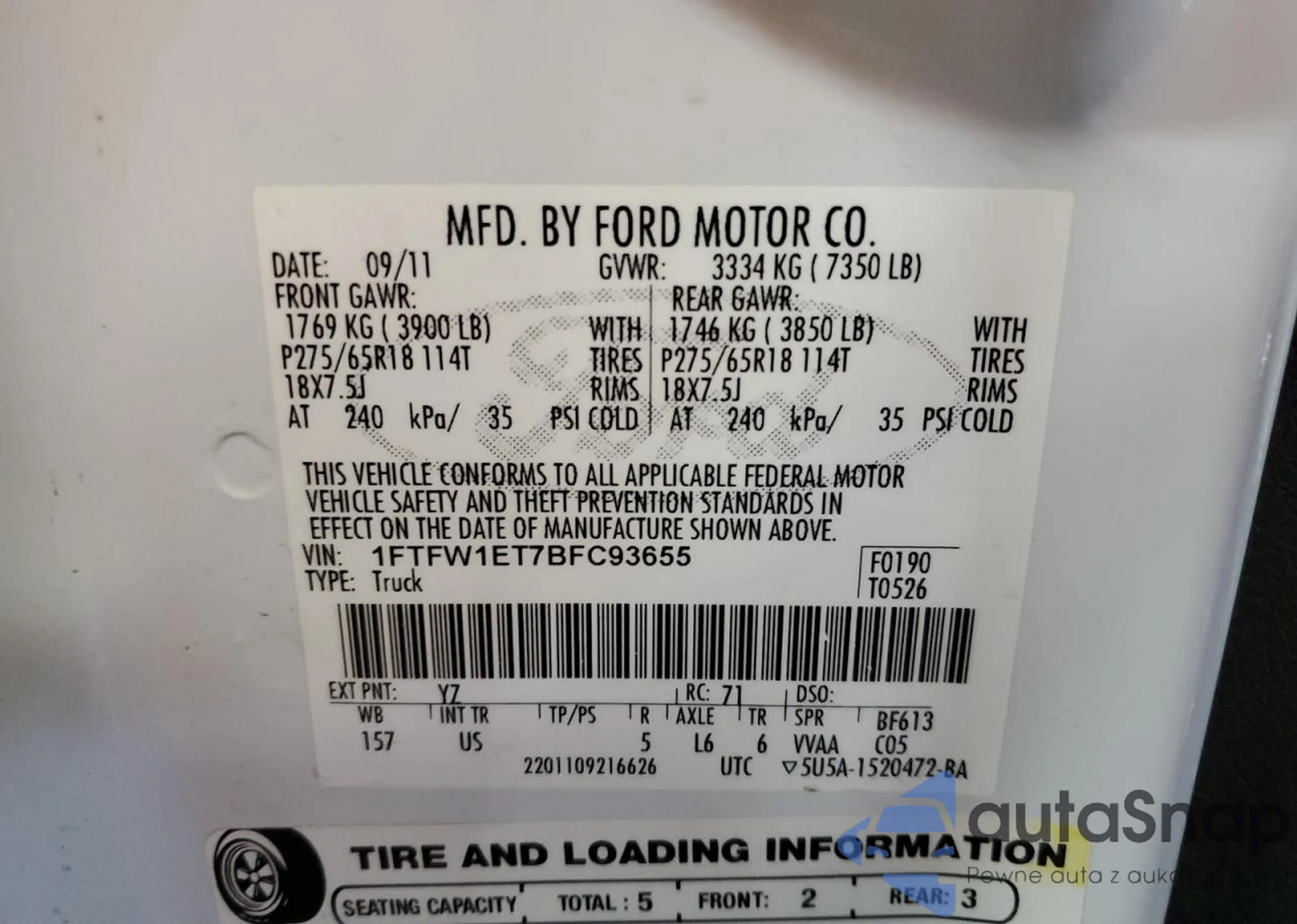 VIN: 1FTFW1ET7BFC93655