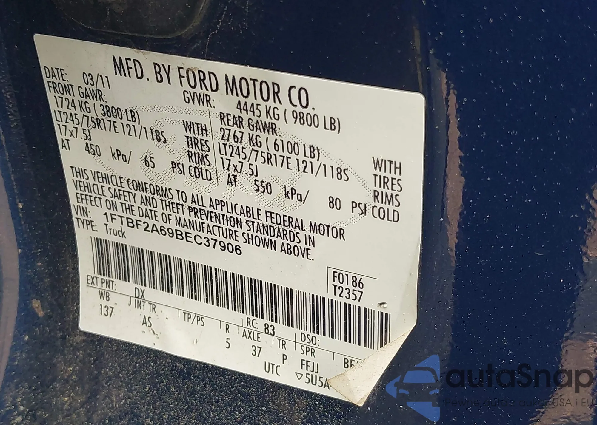 VIN: 1FTBF2A69BEC37906