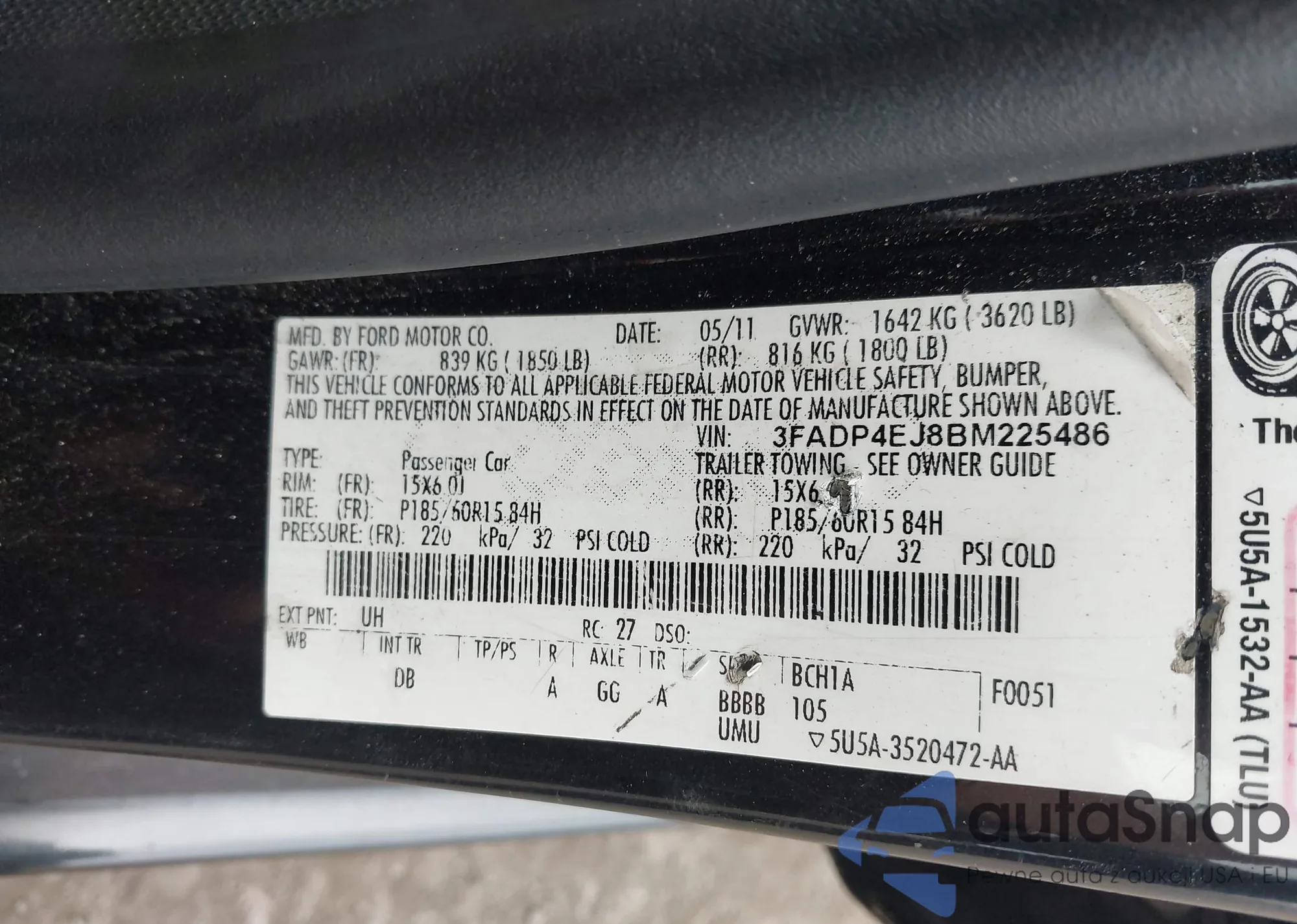 VIN: 3FADP4EJ8BM225486