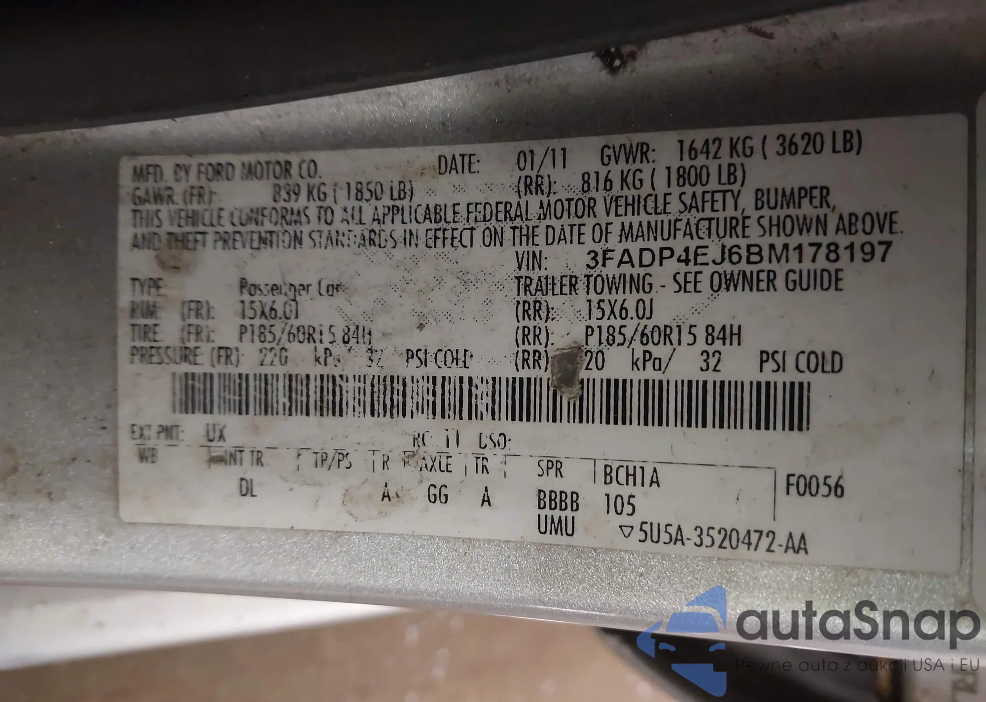 VIN: 3FADP4EJ6BM178197