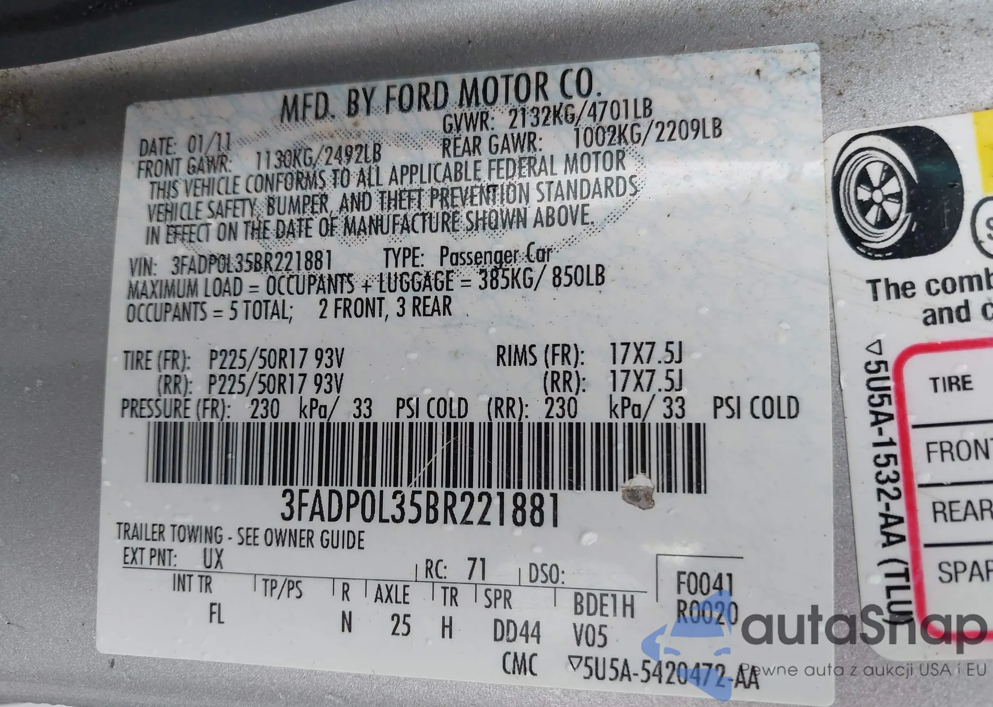 VIN: 3FADP0L35BR221881