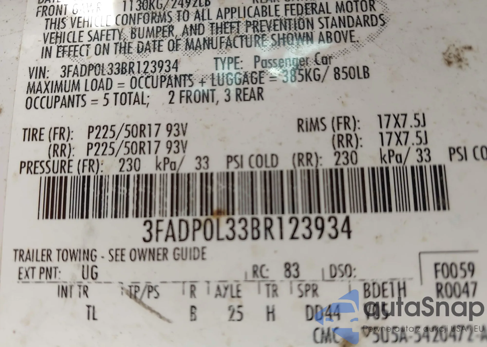VIN: 3FADP0L33BR123934