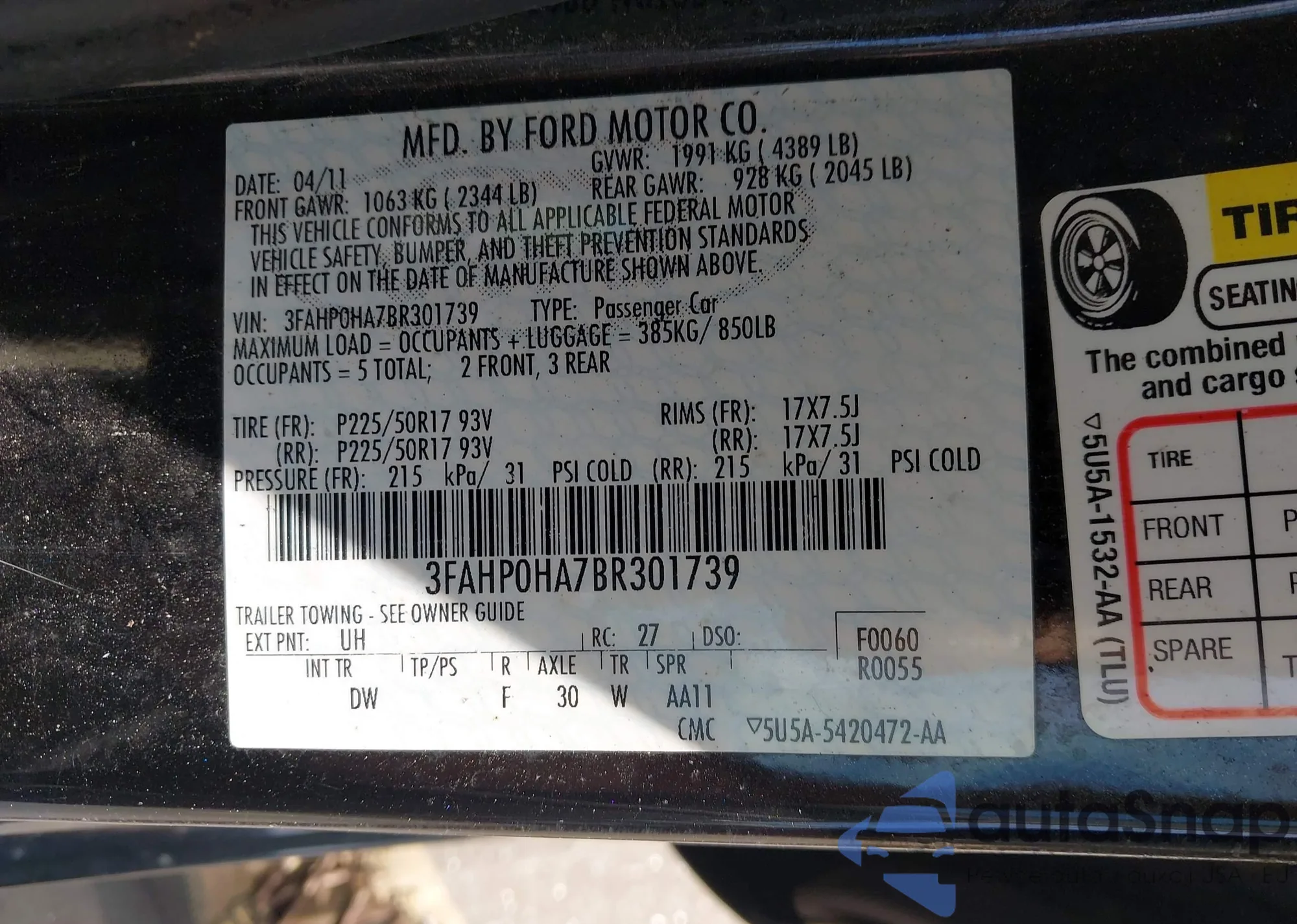 VIN: 3FAHP0HA7BR301739