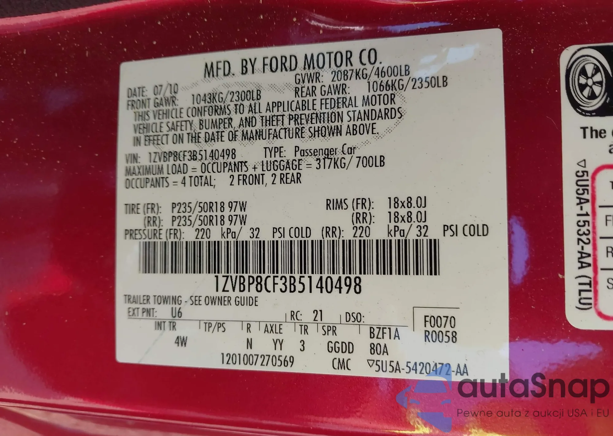 VIN: 1ZVBP8CF3B5140498