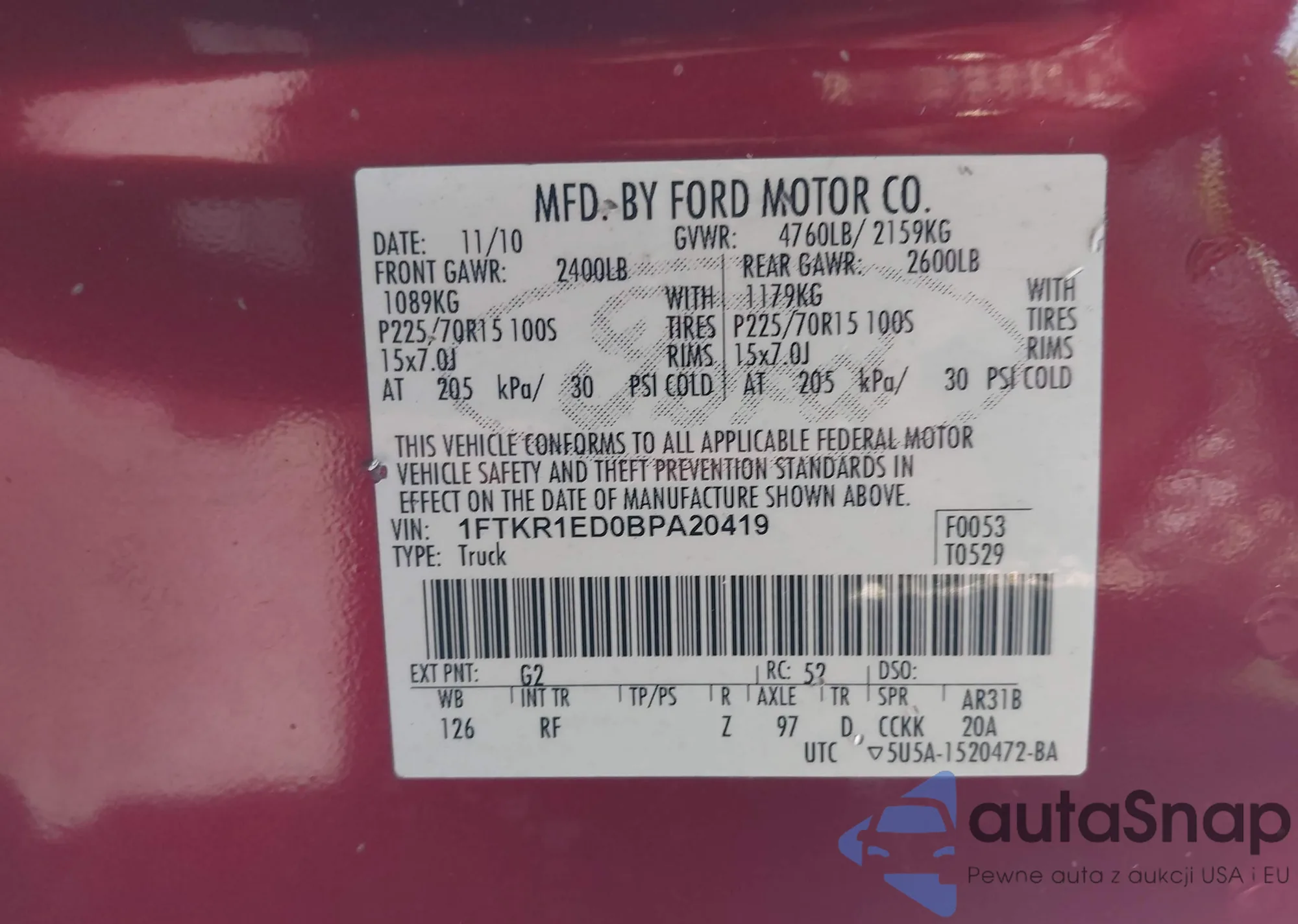VIN: 1FTKR1ED0BPA20419