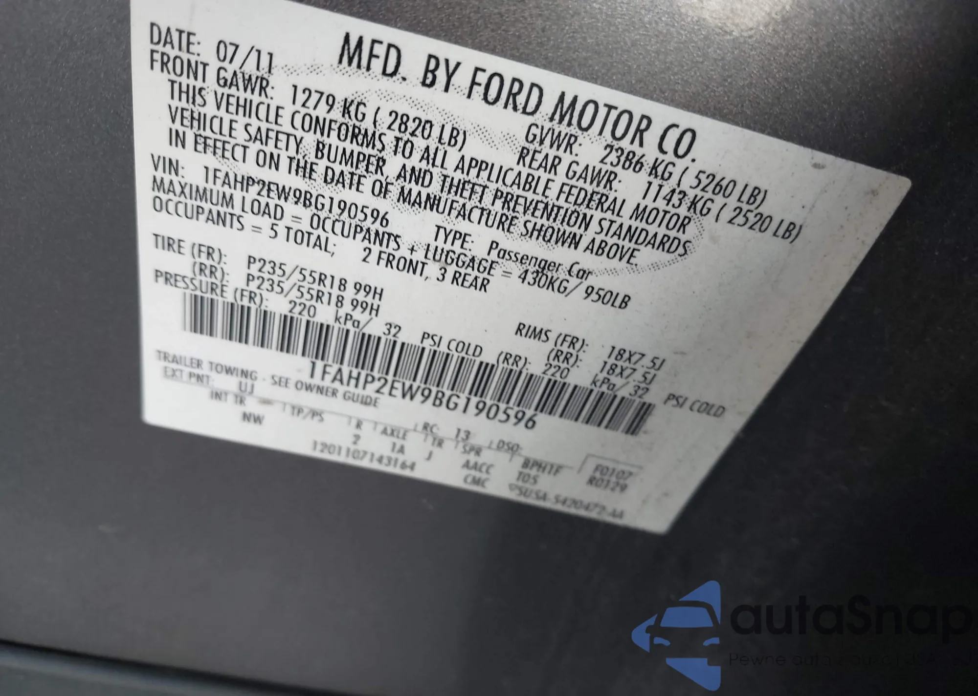 VIN: 1FAHP2EW9BG190596