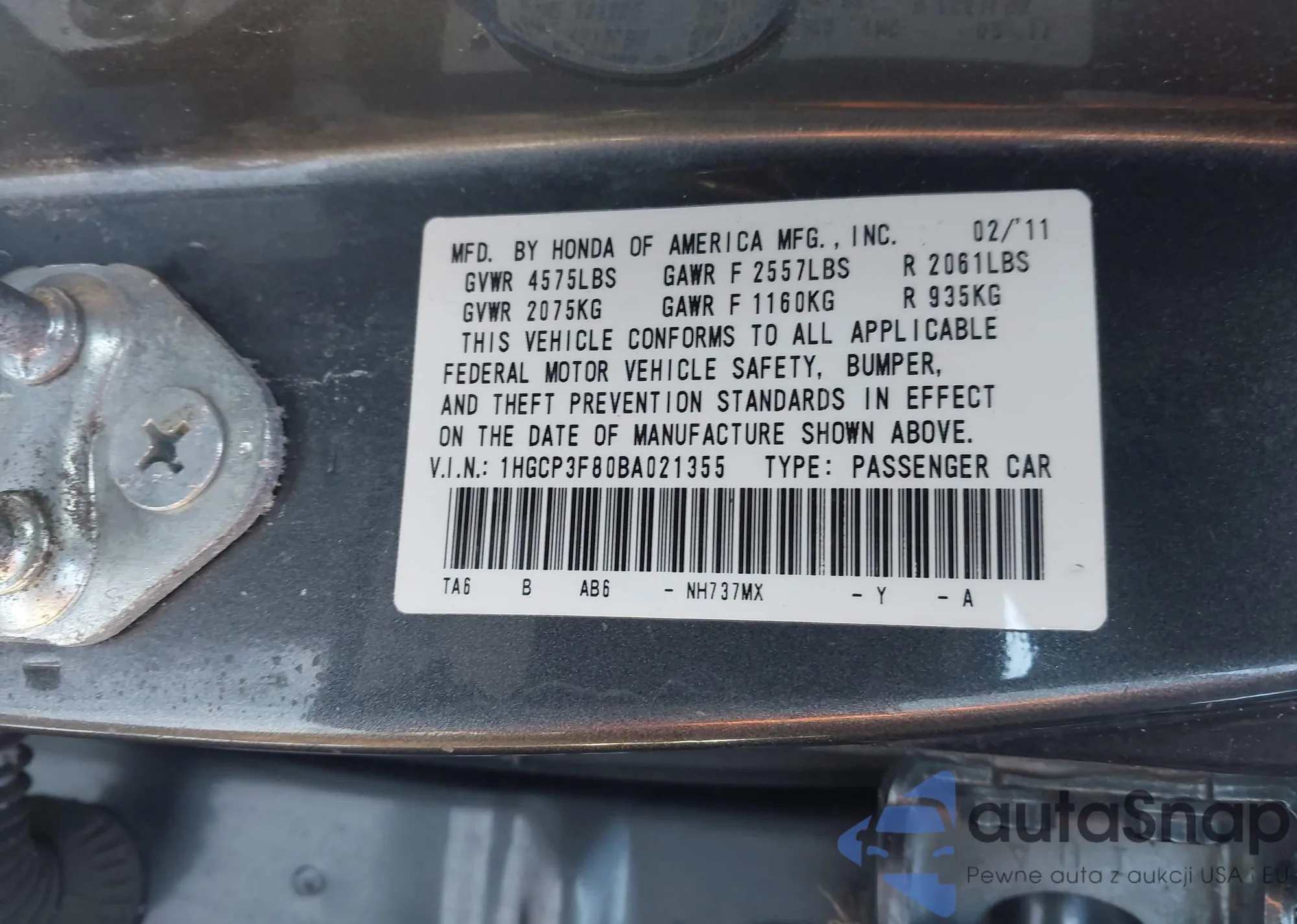 VIN: 1HGCP3F80BA021355