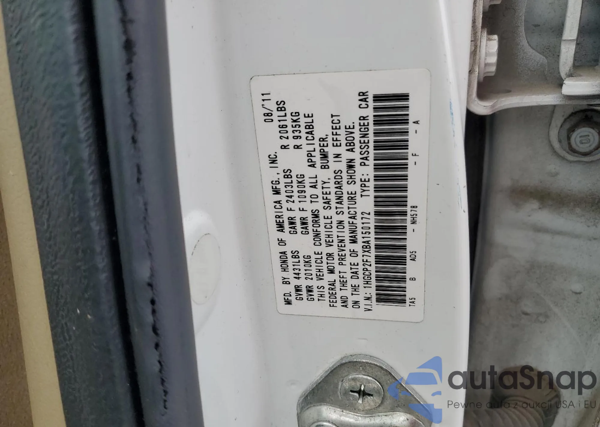 VIN: 1HGCP2F7XBA150172