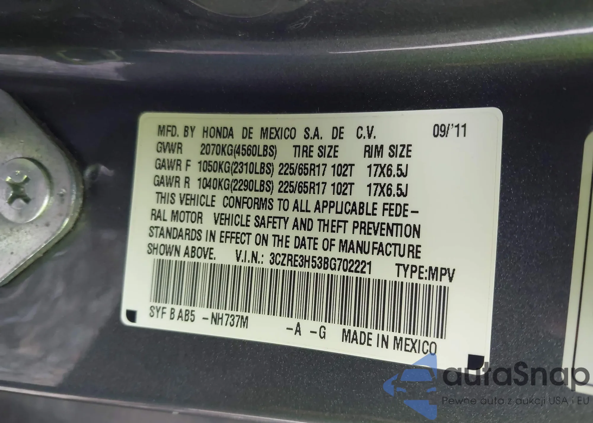 VIN: 3CZRE3H53BG702221