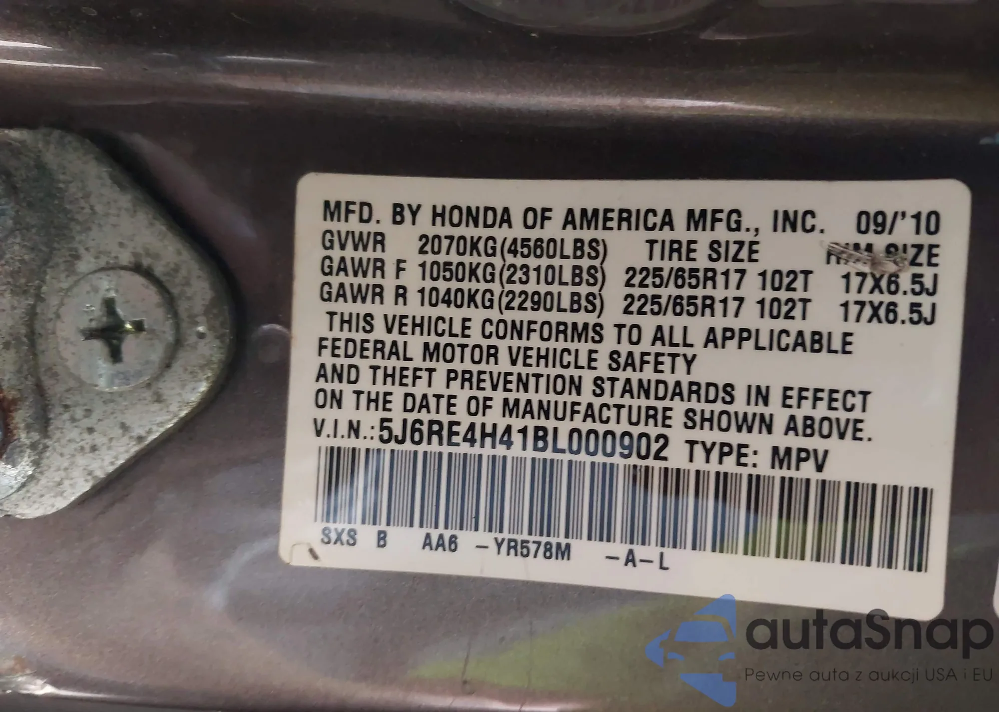 VIN: 5J6RE4H41BL000902