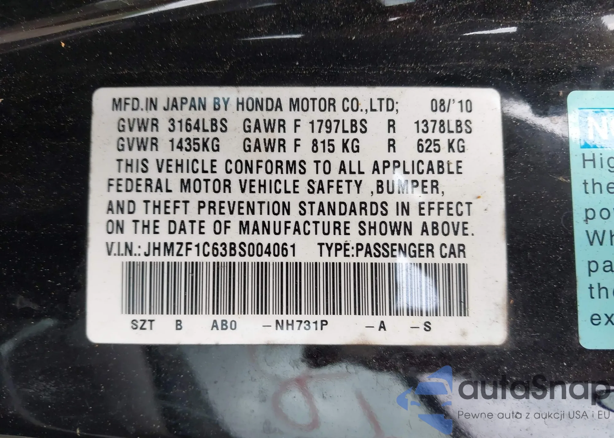 VIN: JHMZF1C63BS004061