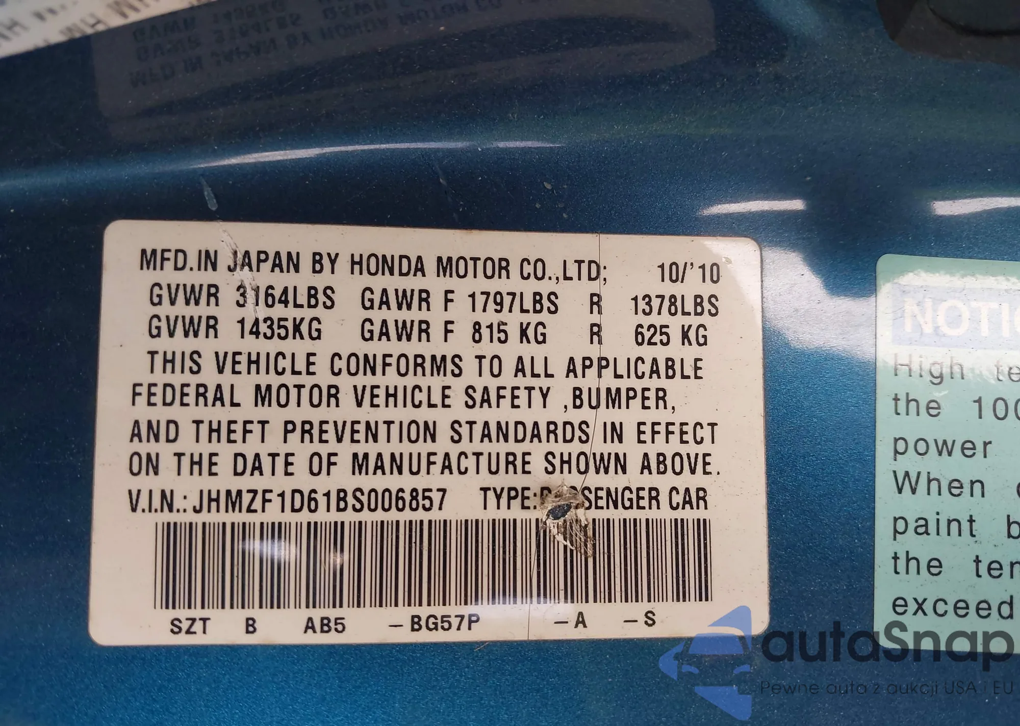 VIN: JHMZF1D61BS006857