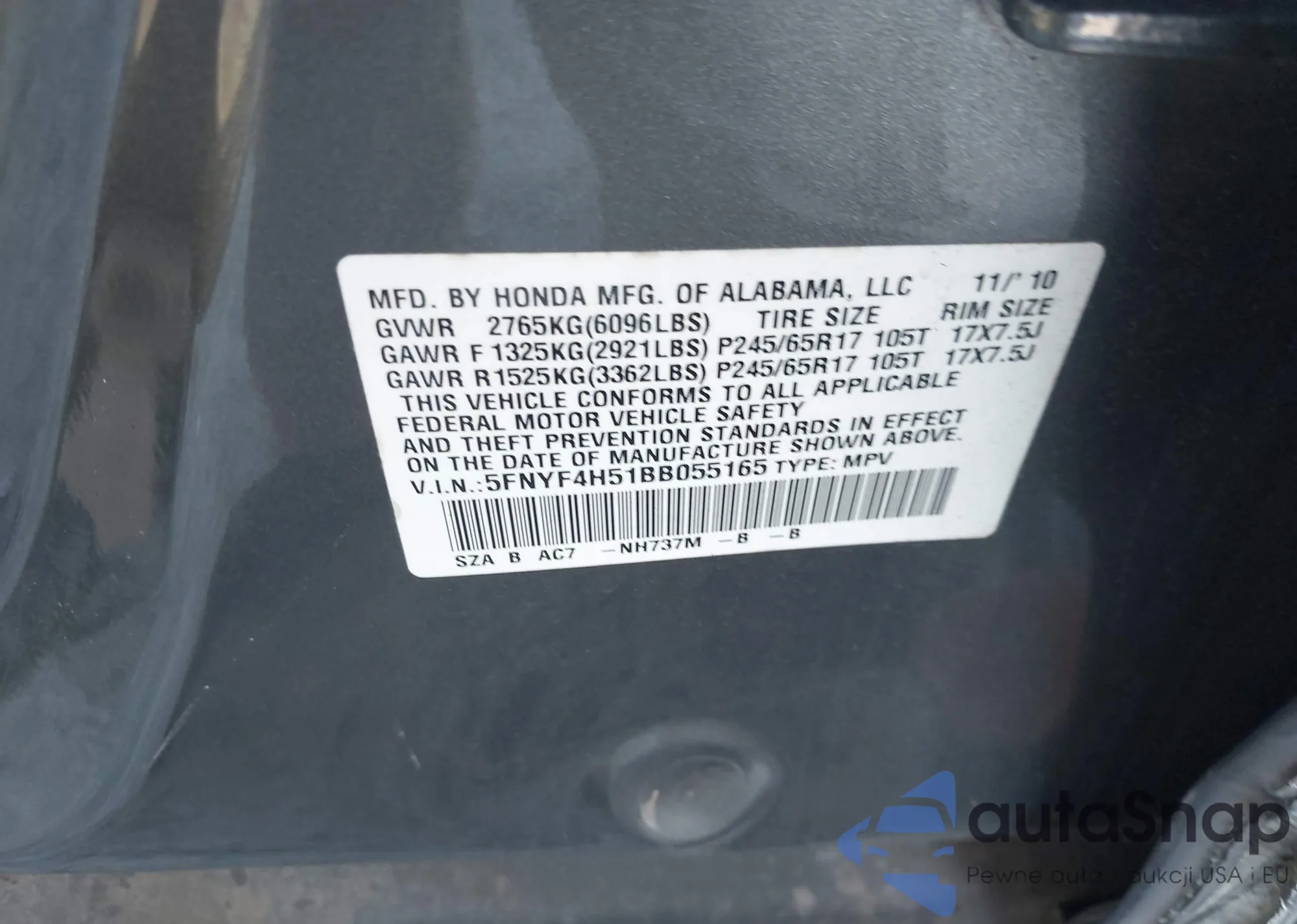 VIN: 5FNYF4H51BB055165