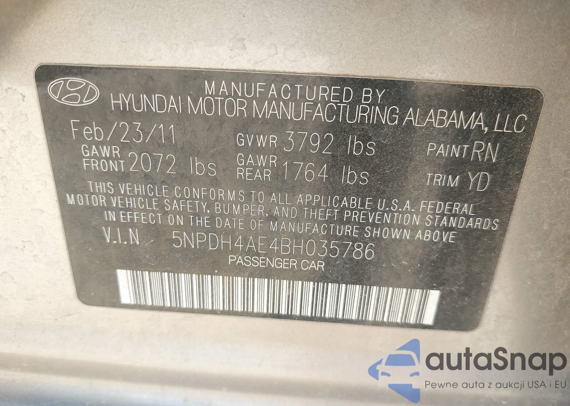 VIN: 5NPDH4AE4BH035786
