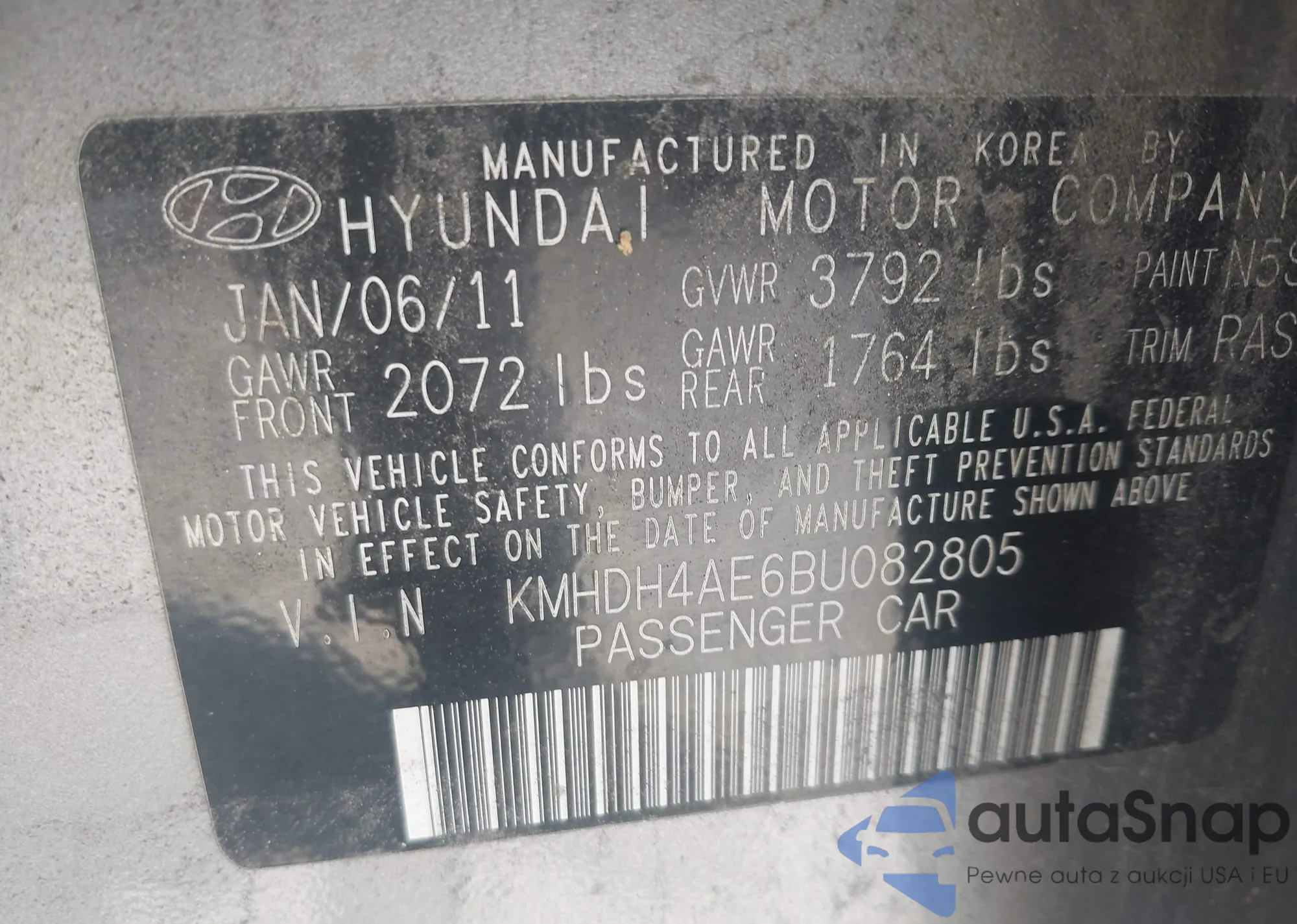 VIN: KMHDH4AE6BU082805