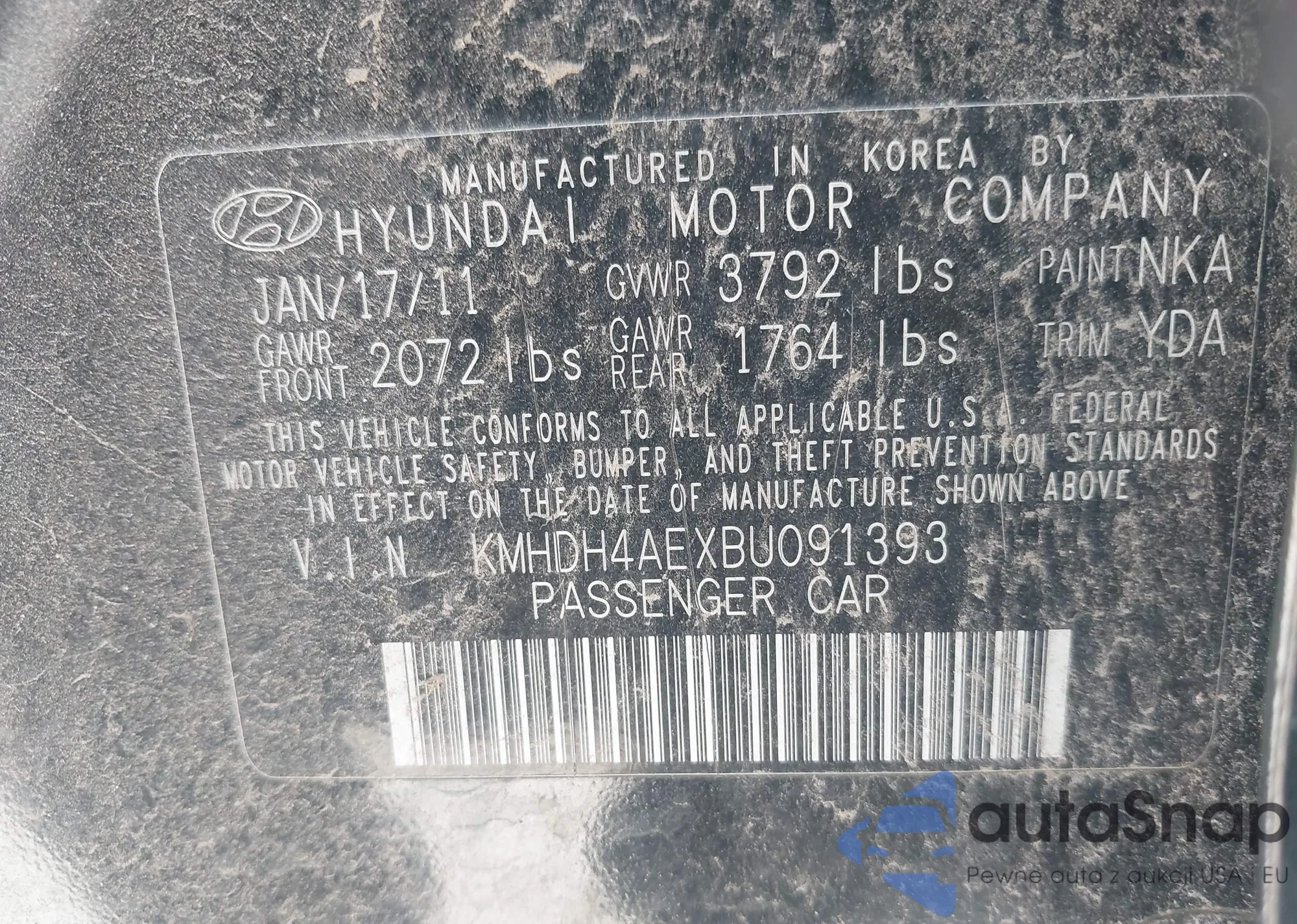 VIN: KMHDH4AEXBU091393