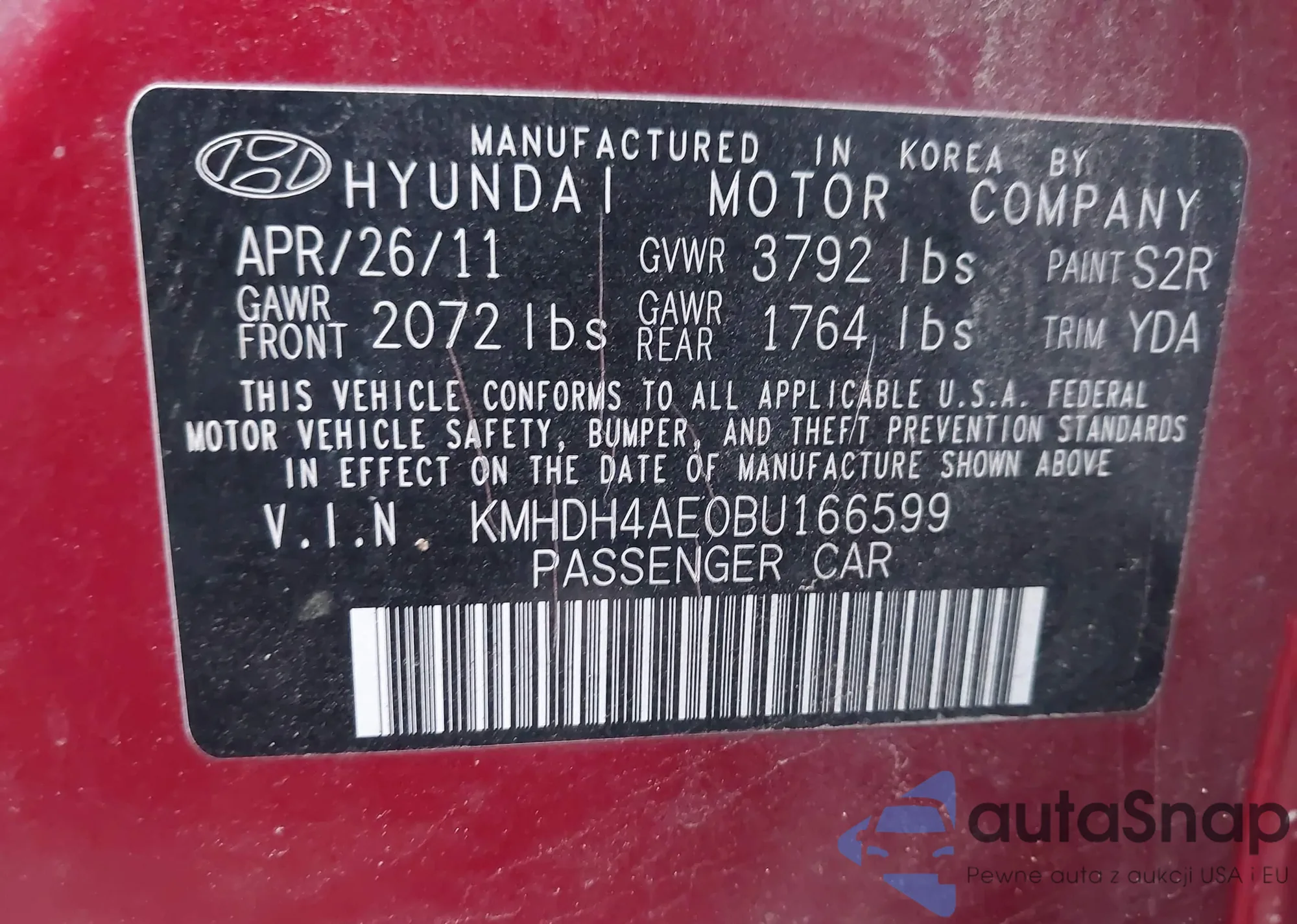 VIN: KMHDH4AE0BU166599