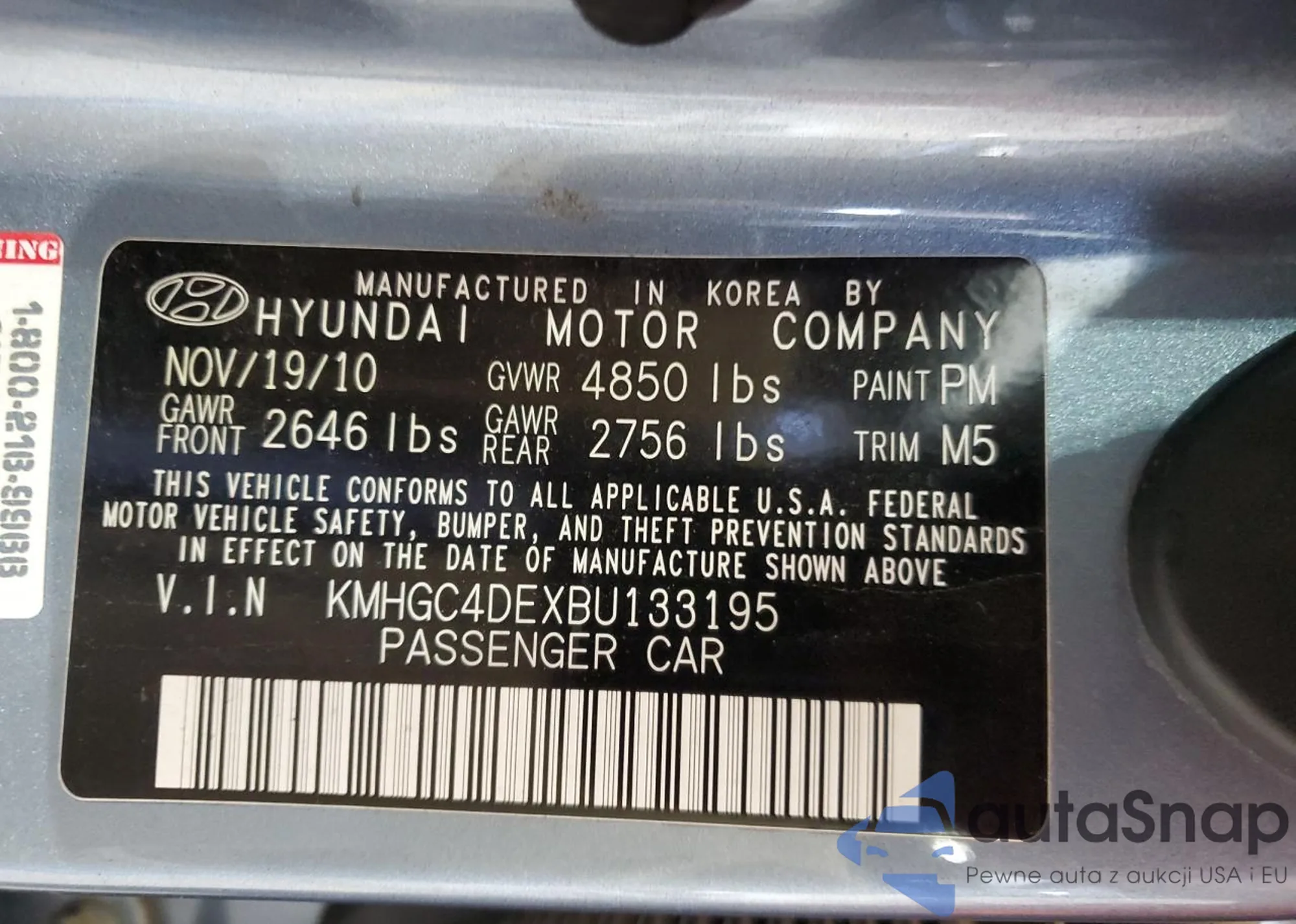 VIN: KMHGC4DEXBU133195