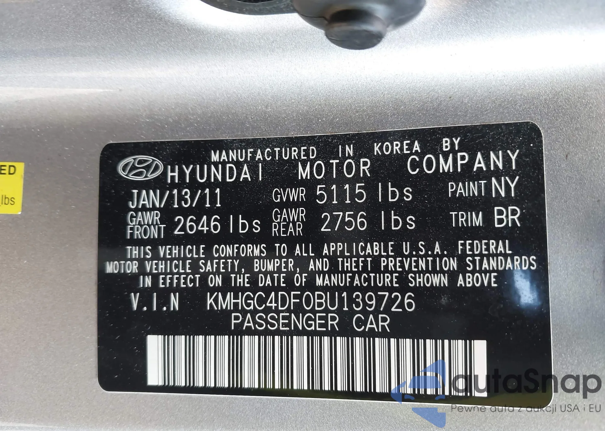 Samochód Hyundai Genesis 2011 (VIN KMHGC4DF0BU139726) nie był wcześniej licytowany. Dokumenty są czyste, przebieg odpowiada lub jest niższy niż średnia rynku. Sprzedaje go firma ubezpieczeniowa – polecamy zakup. Dostawa do portu zajmie ok. 6–8 tygodni.