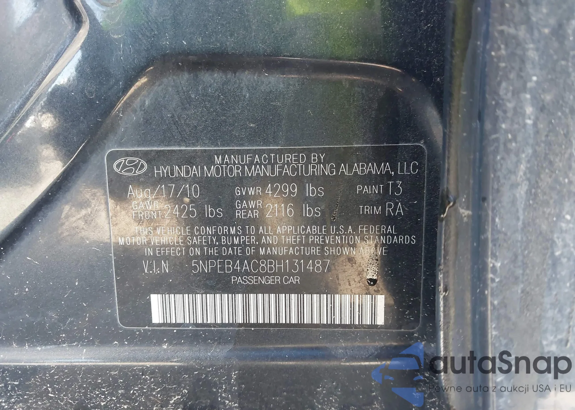 VIN: 5NPEB4AC8BH131487