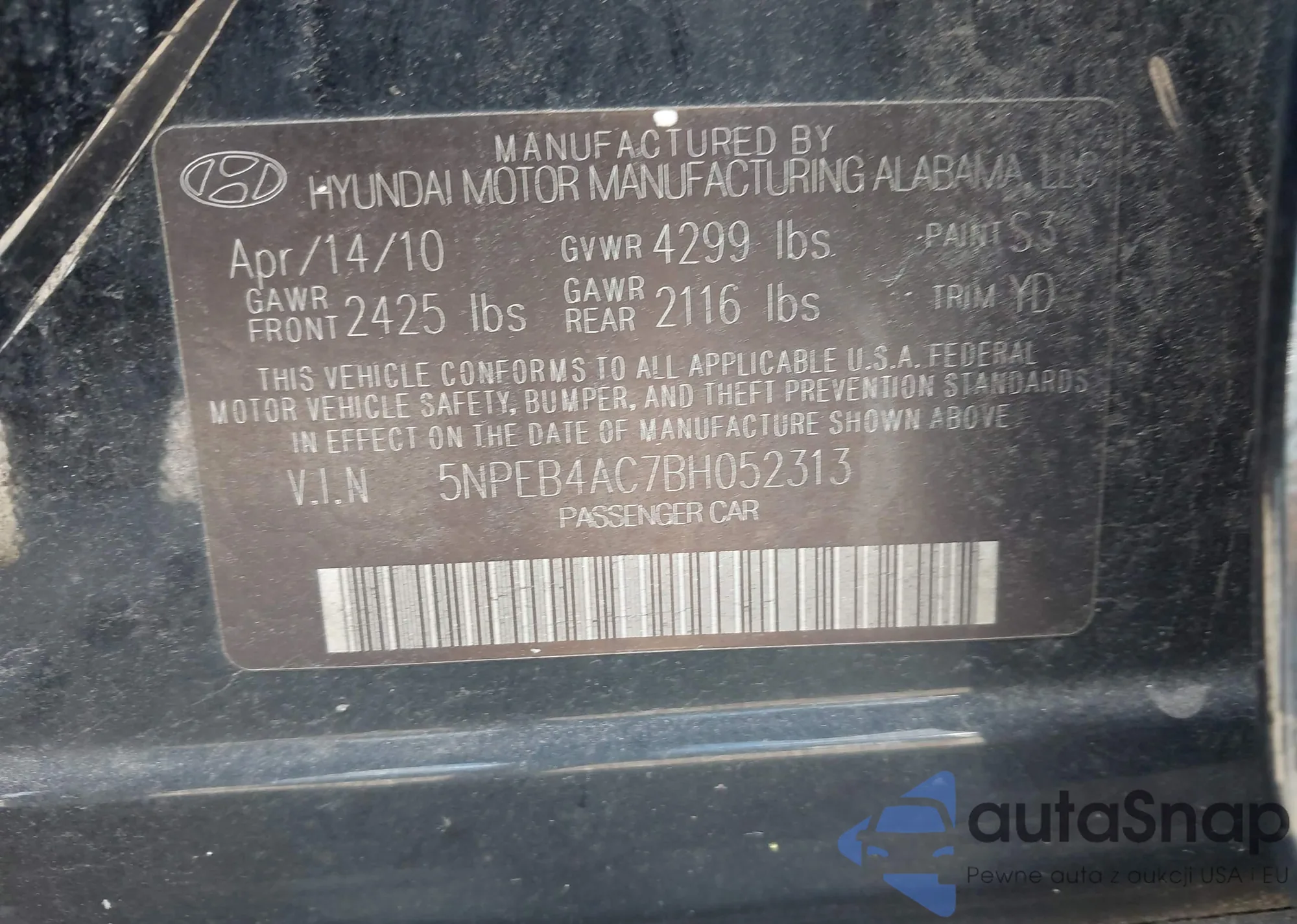 VIN: 5NPEB4AC7BH052313