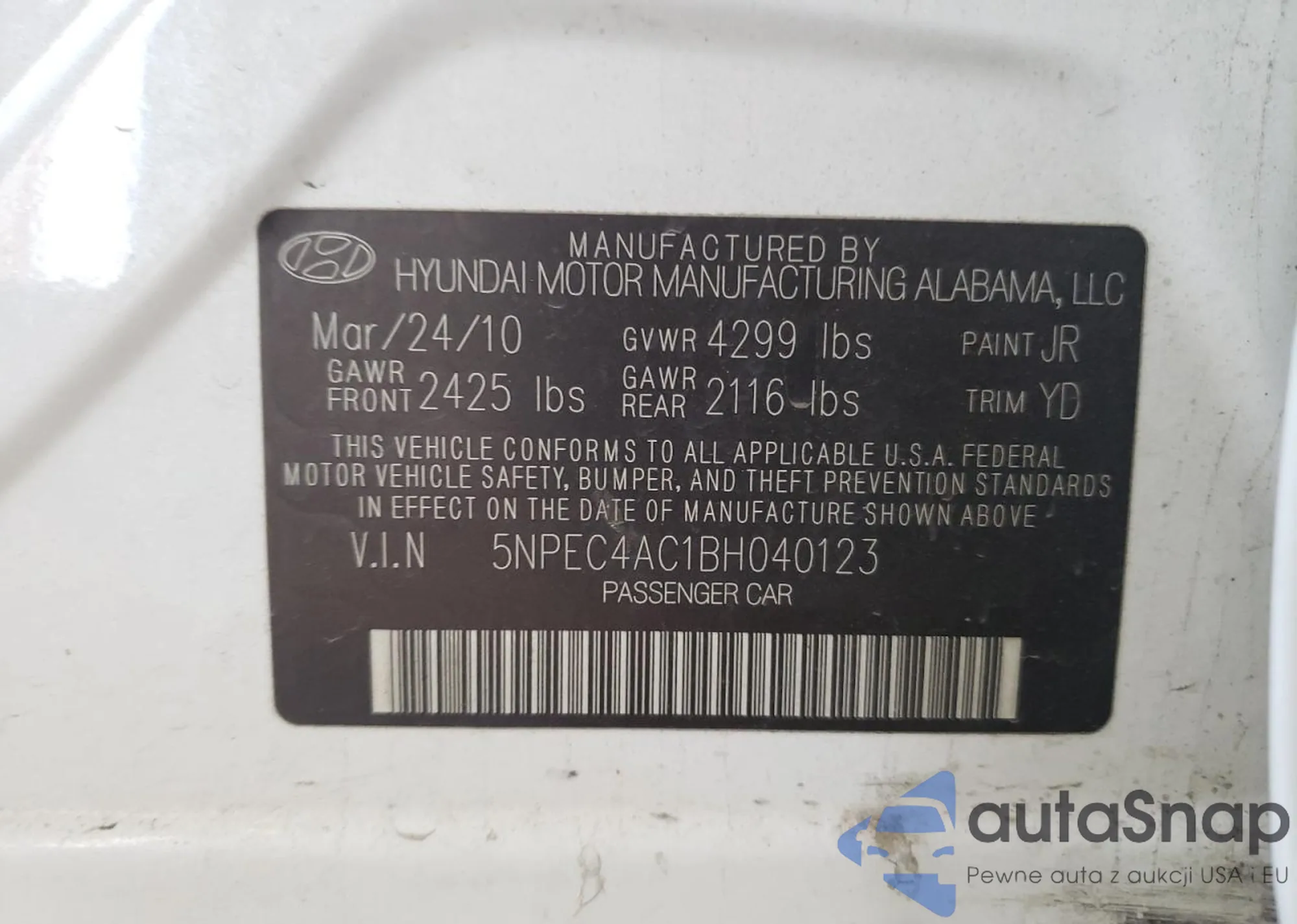 • VIN: 5NPEC4AC1BH040123