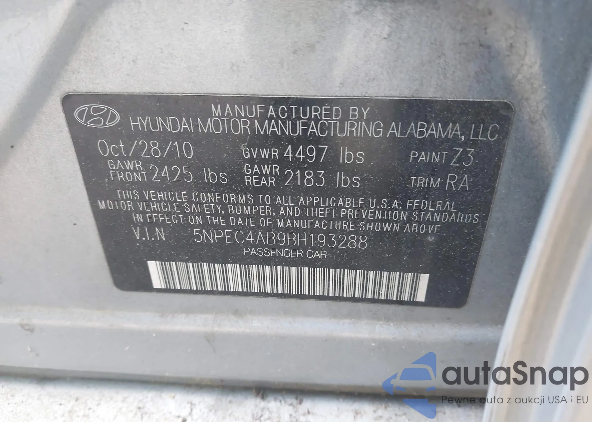 VIN: 5NPEC4AB9BH193288