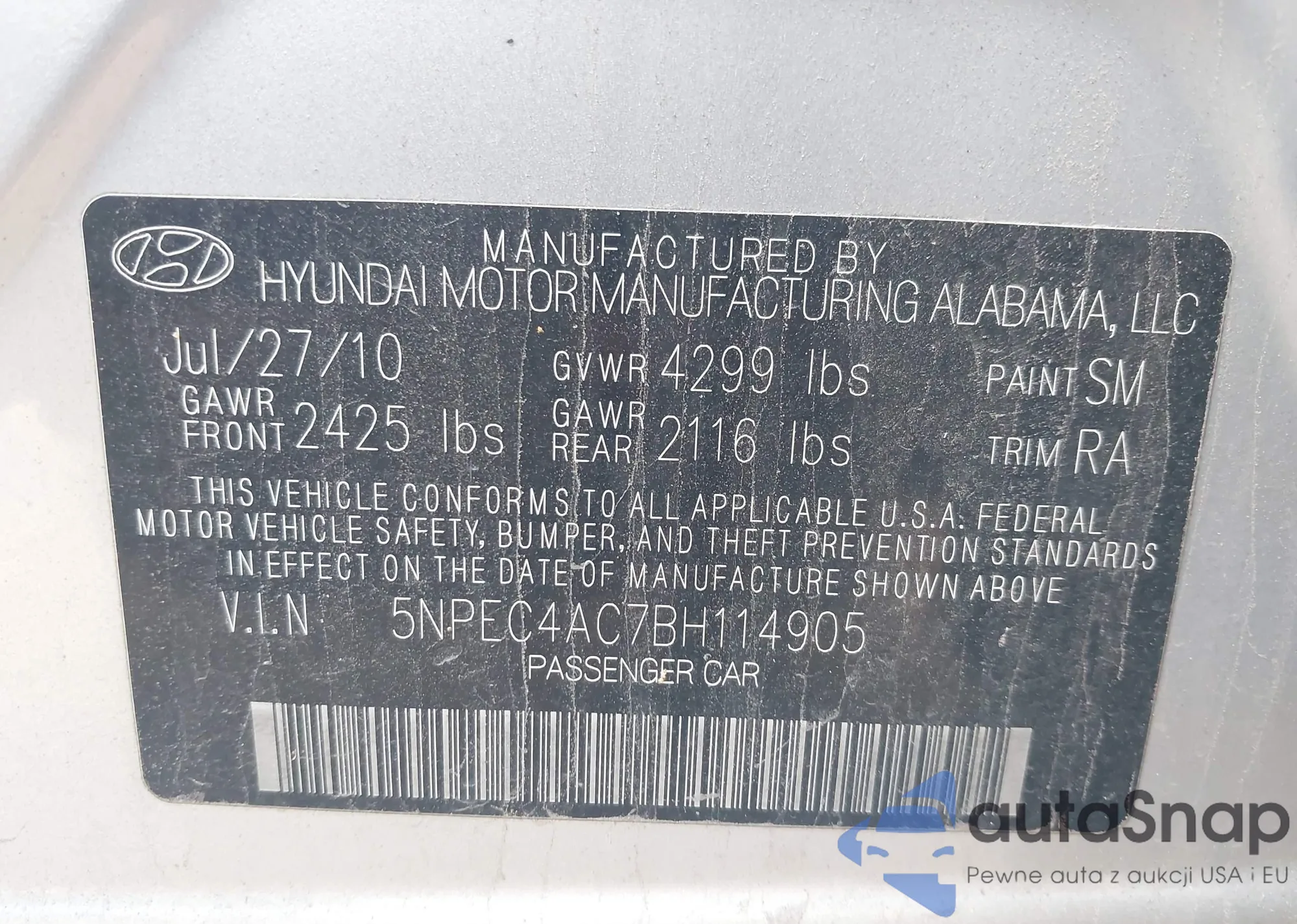 VIN: 5NPEC4AC7BH114905