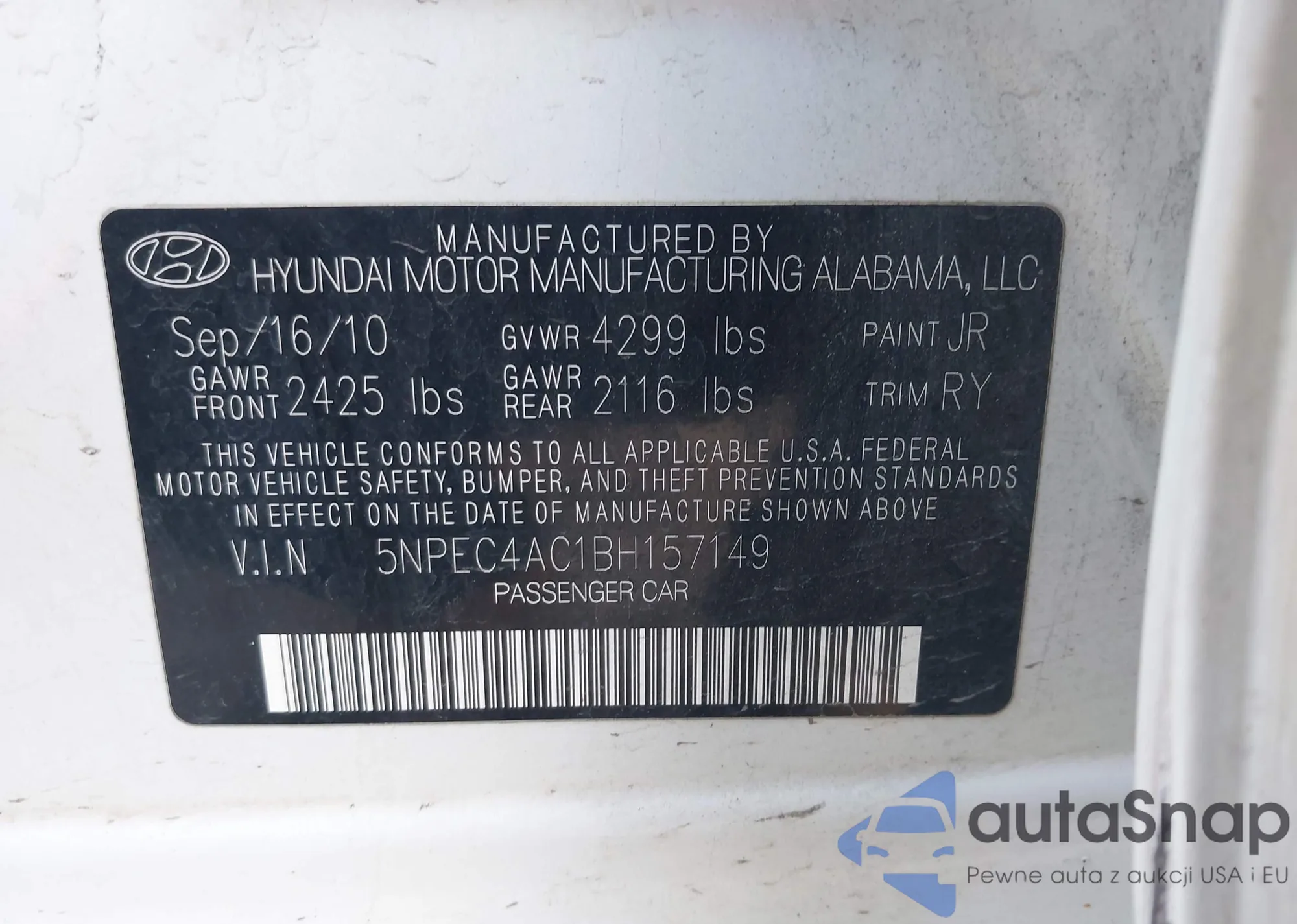 • VIN: 5NPEC4AC1BH157149