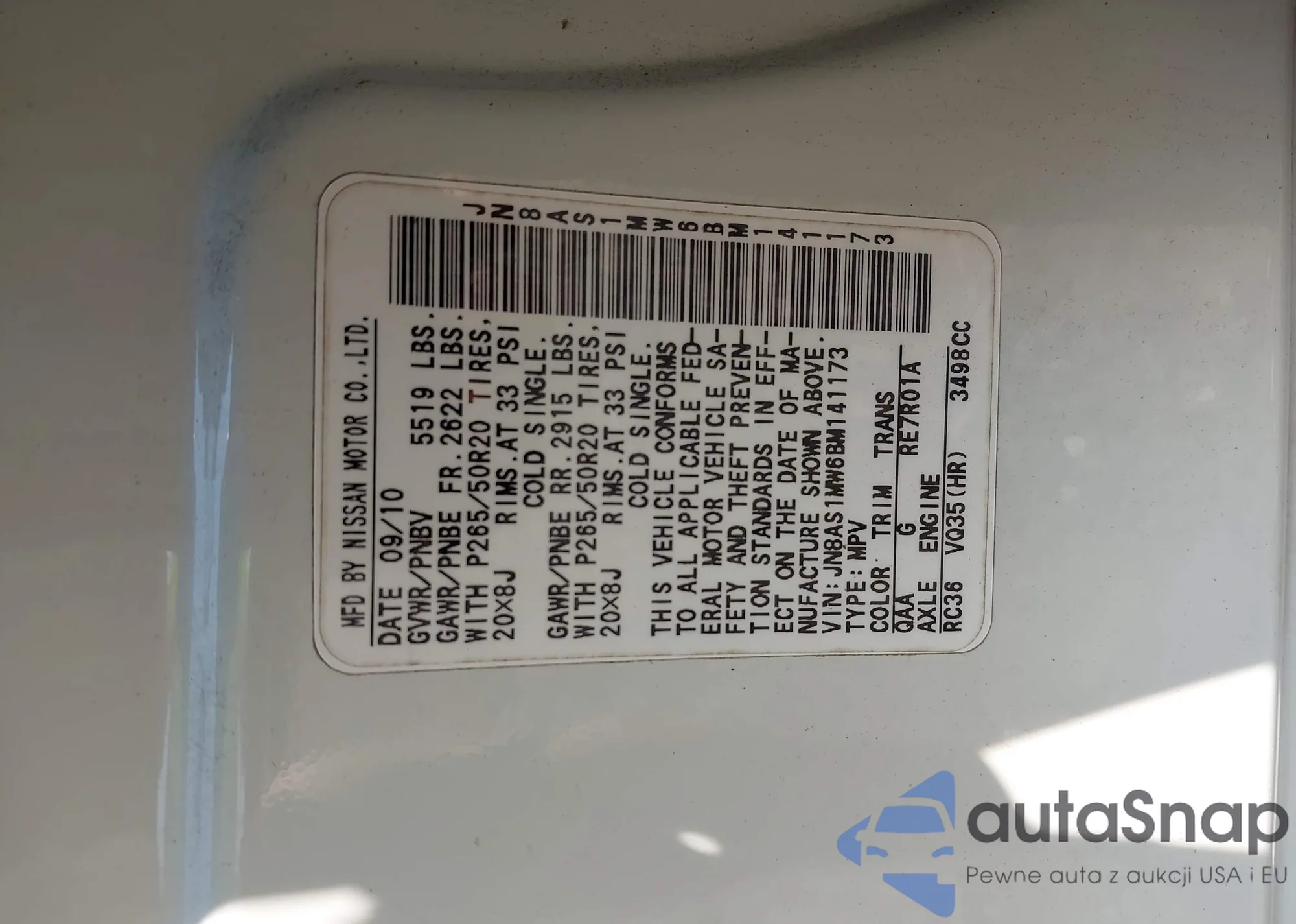 VIN: JN8AS1MW6BM141173