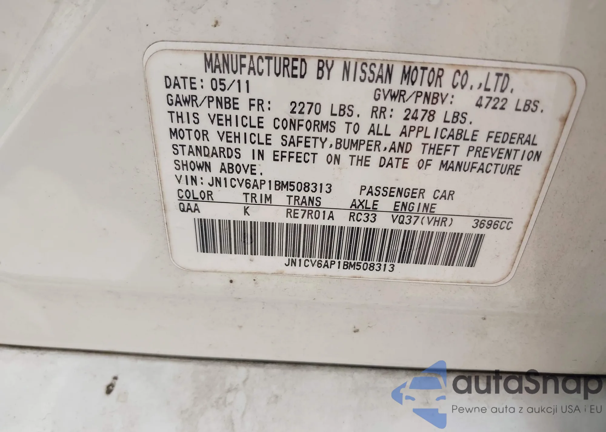 VIN: JN1CV6AP1BM508313